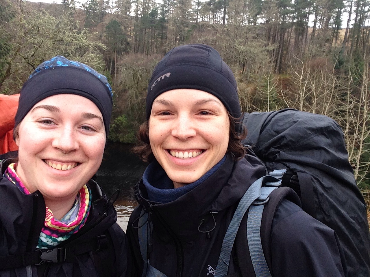 The first 10km of the day were relatively dry and the setting was gorgeous. We saw a ghost house where only the stone chimney remained. We followed an old train line along Loch Oich, passed through a tunel and marvelled at metal pathways above our heads for the rivers. The highlight of the morning was finding compost toilets that were UNLOCKED. Yay us.