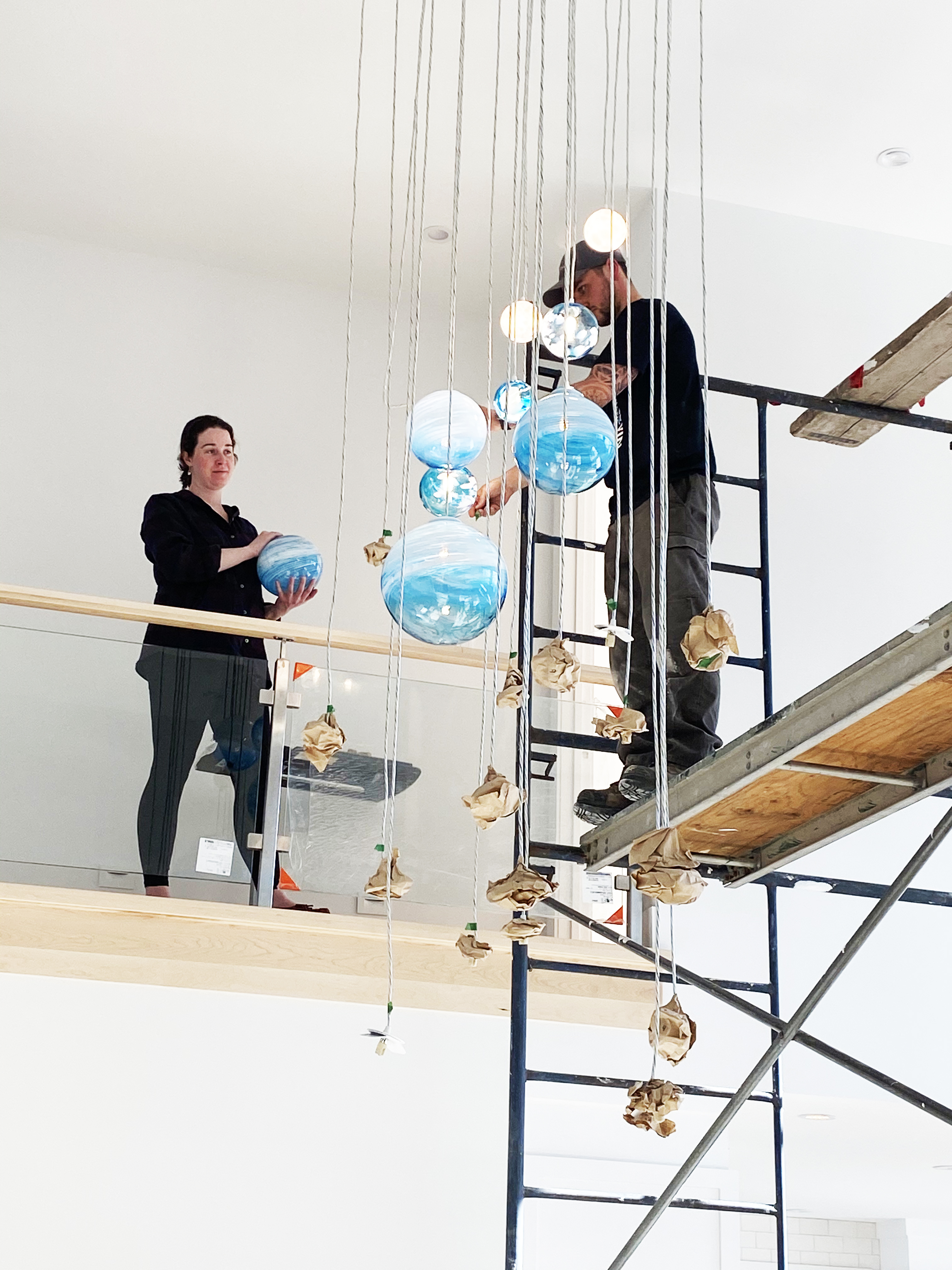 Collaboration 2019-2021. Conception: P. Champoux et S. Champoux, artiste souffleur de verre (glassblower): Jean-Simon Trottier, électricité & canopée (electricity and canopy): Mathieu Dufresne et Jean-Philippe Brouillette.