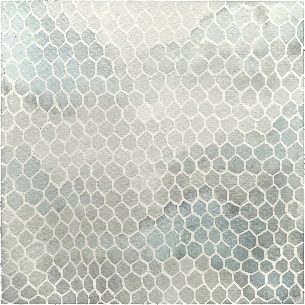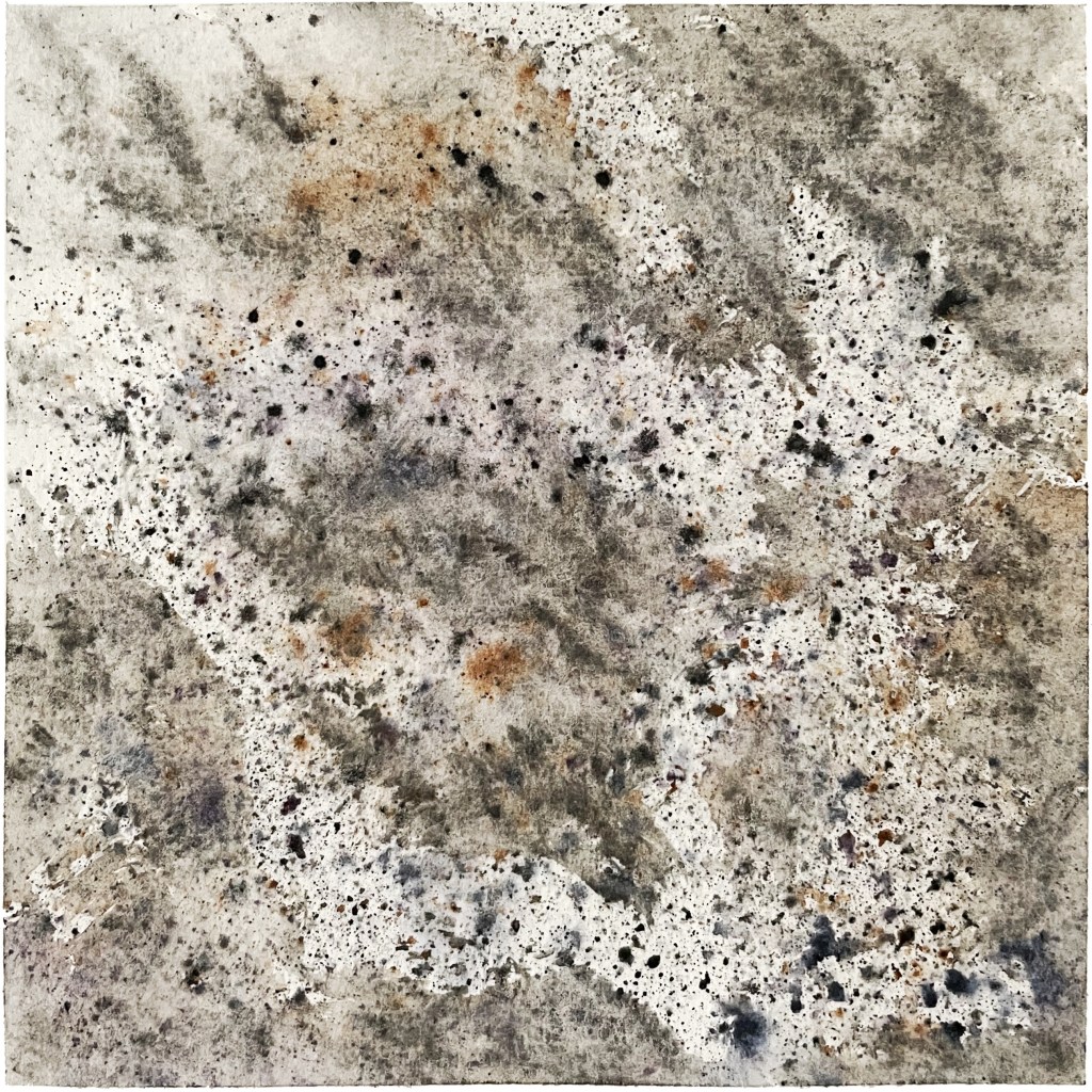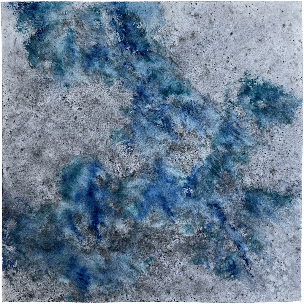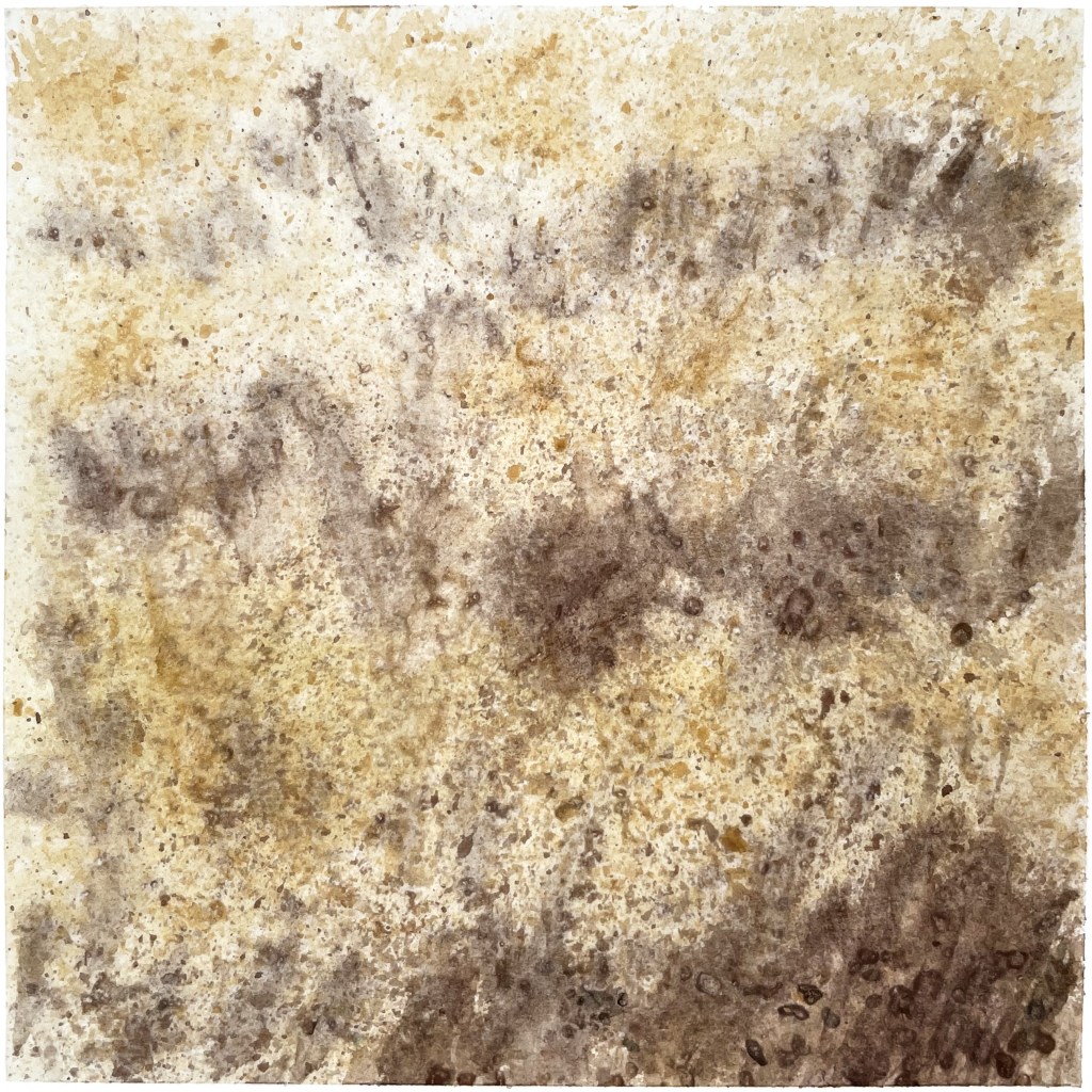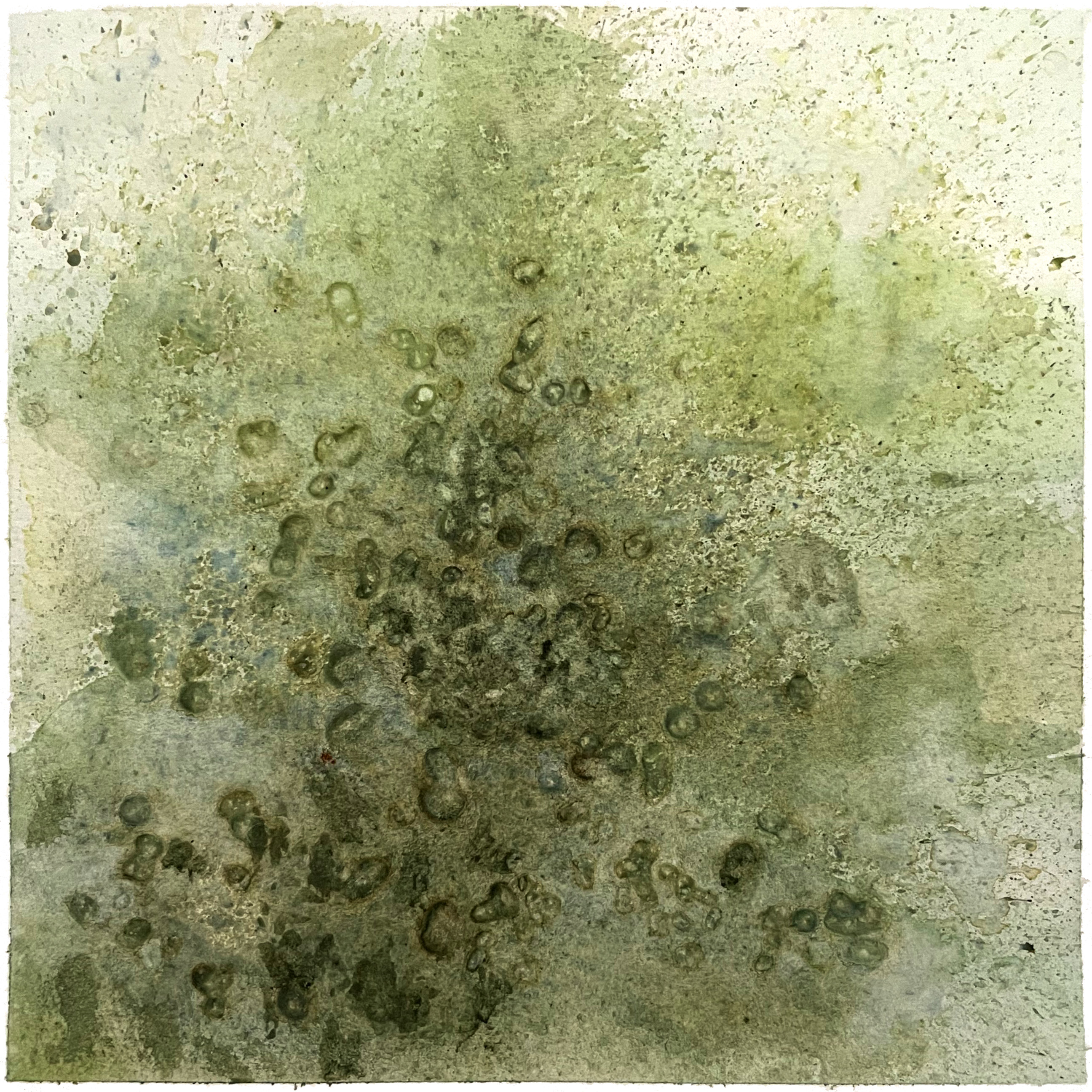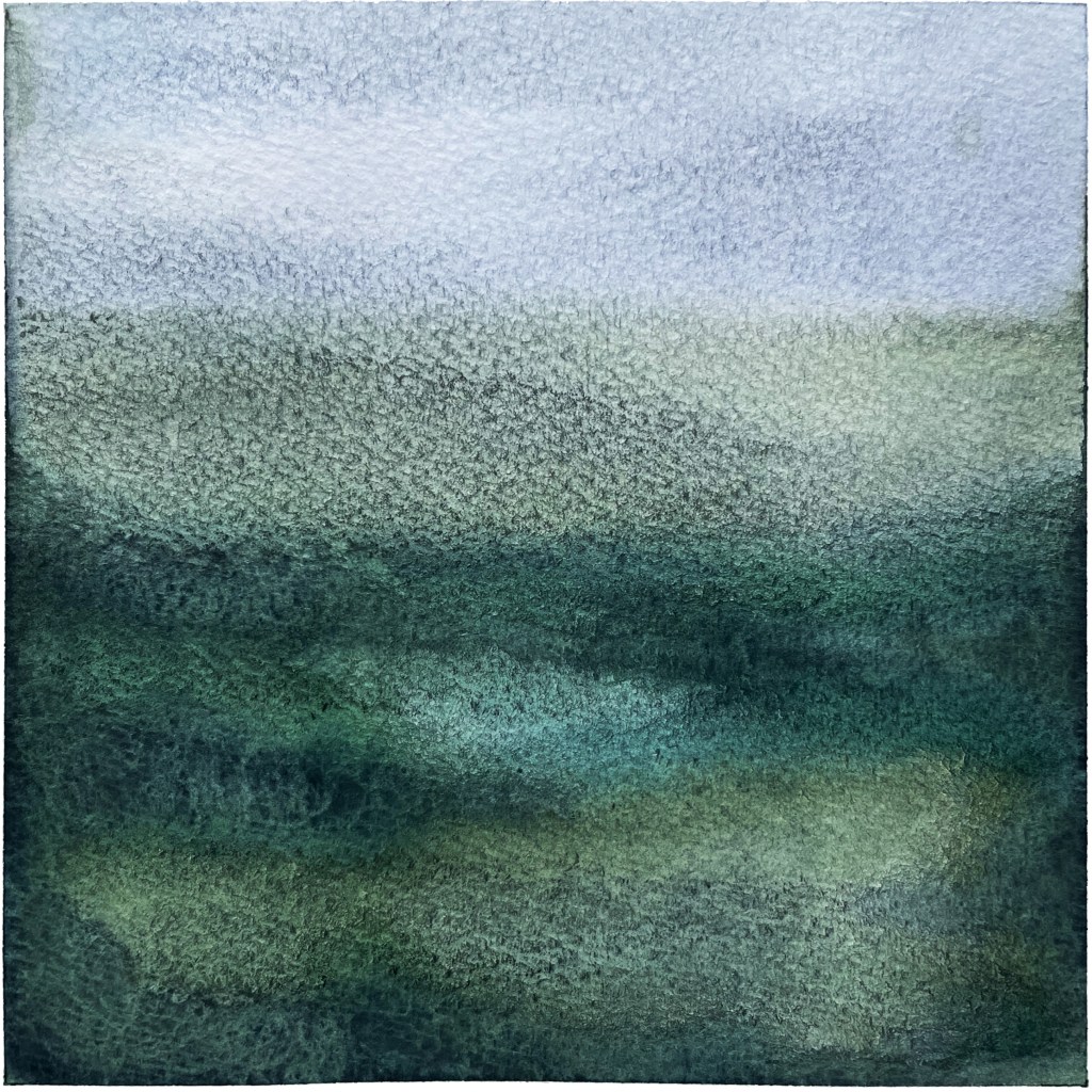 Watercolour and cold-pressed paper – exhibition in the form of a mosaic and installation. Many of these 6″ by 6″ watercolours were reproduced on vellum paper in the artist’s book “Le ventre des galets” (SCW, 2023). All quotes come from Max Porter’s novel “Grief is the Thing with Feathers” (2015).