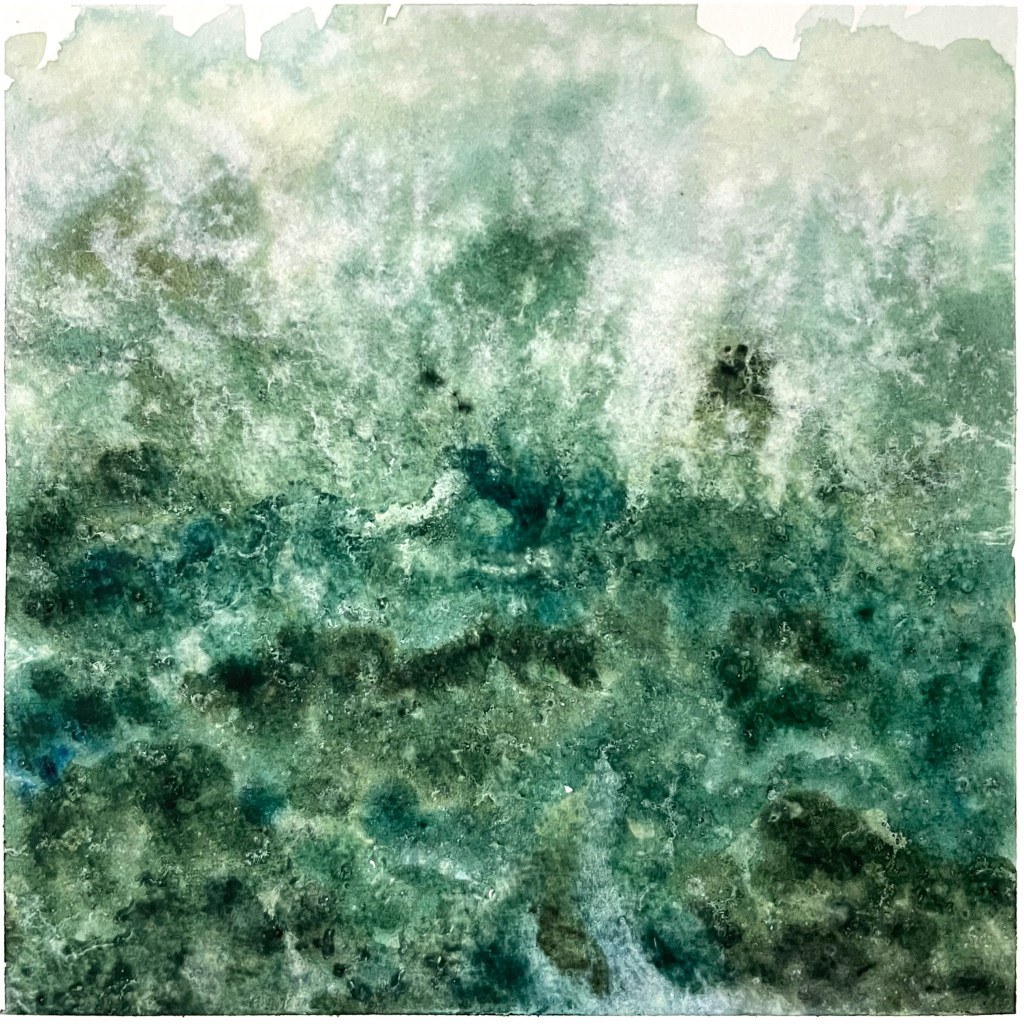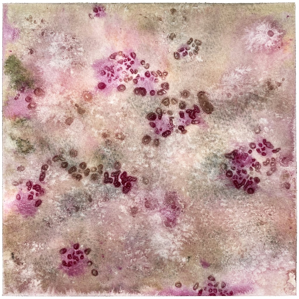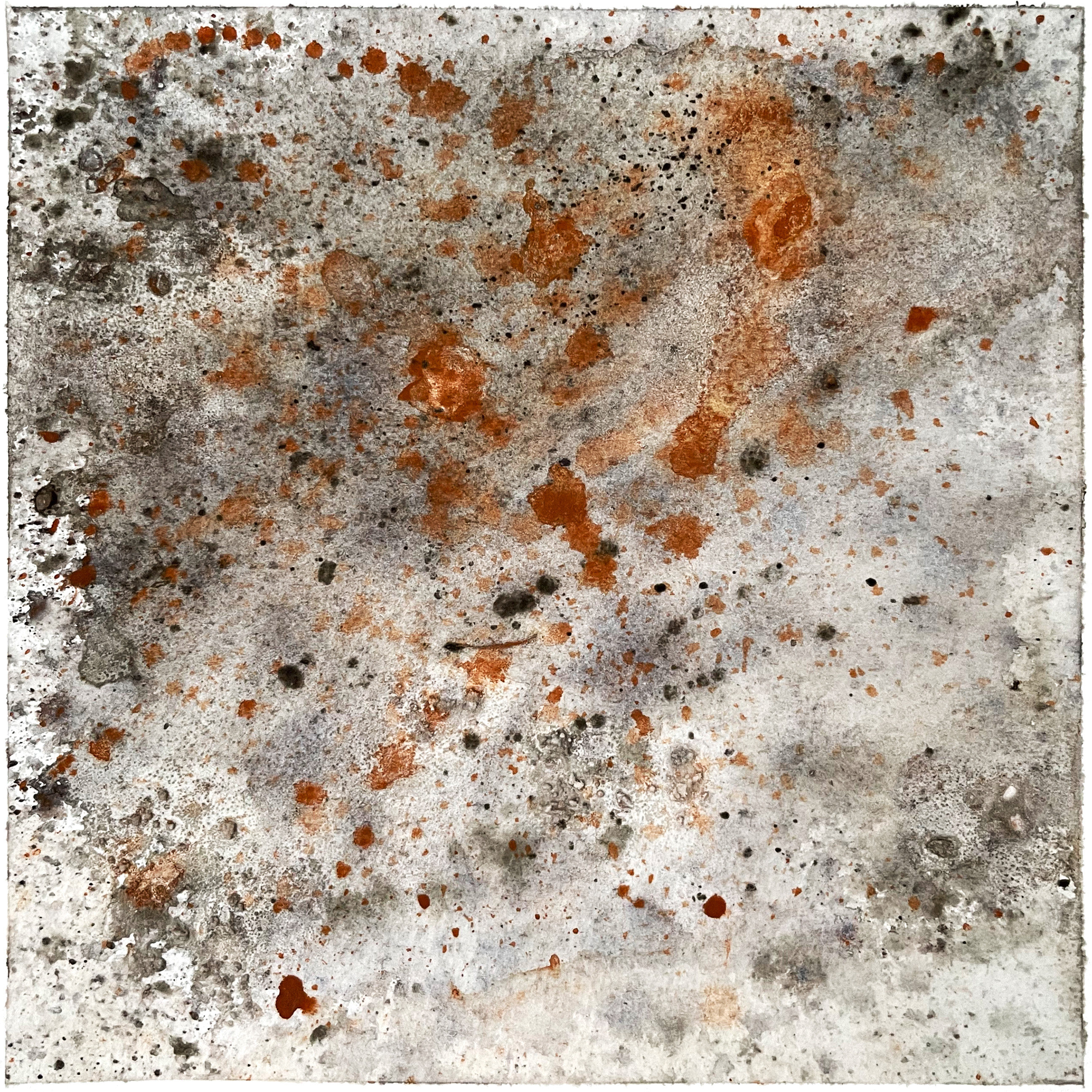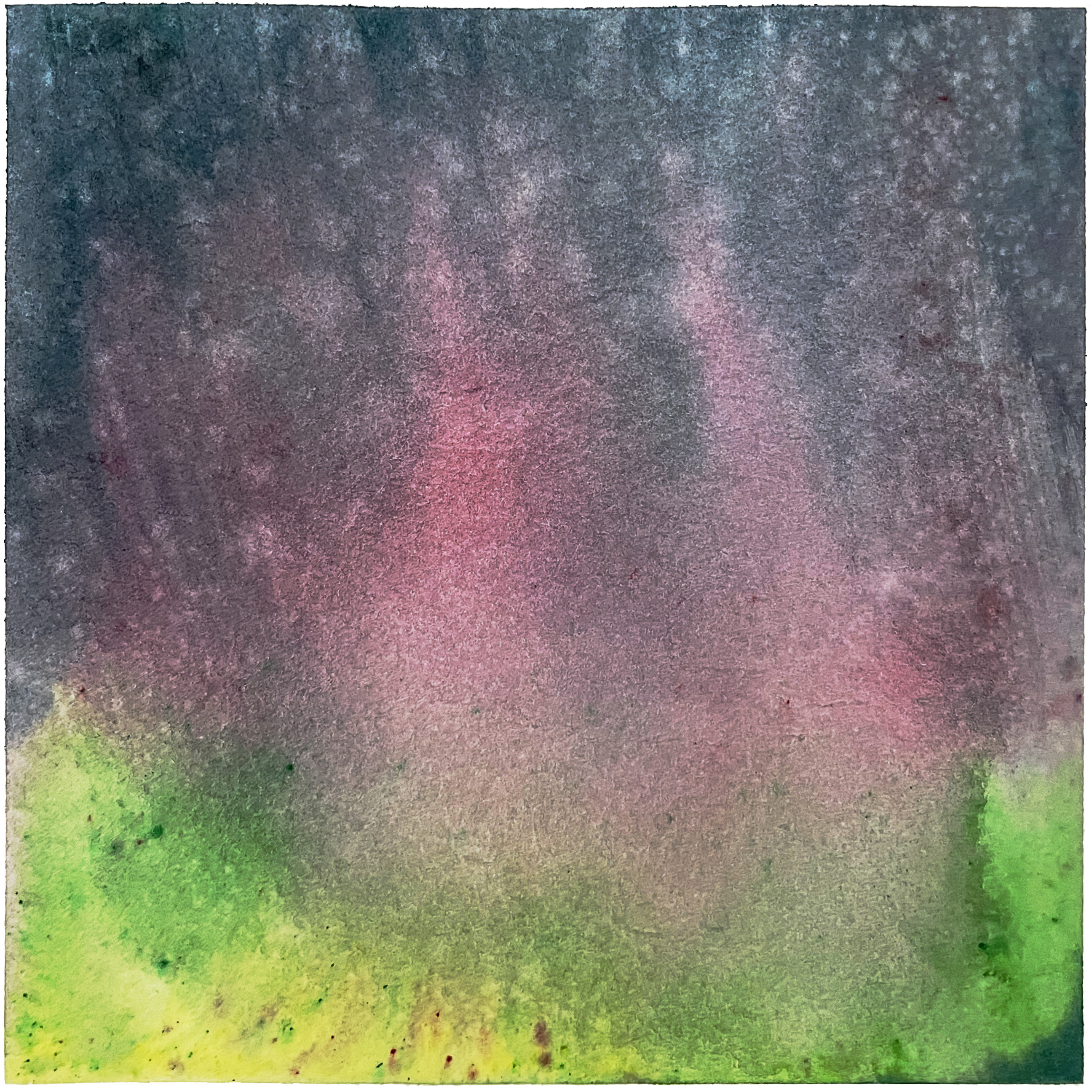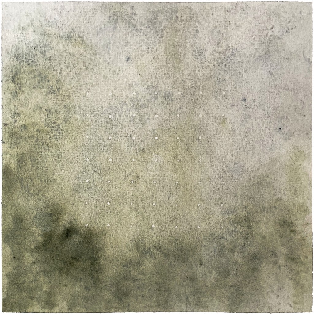 Watercolour and cold-pressed paper – exhibition in the form of a mosaic and installation. Many of these 6″ by 6″ watercolours were reproduced on vellum paper in the artist’s book “Le ventre des galets” (SCW, 2023). All quotes come from Max Porter’s novel “Grief is the Thing with Feathers” (2015).