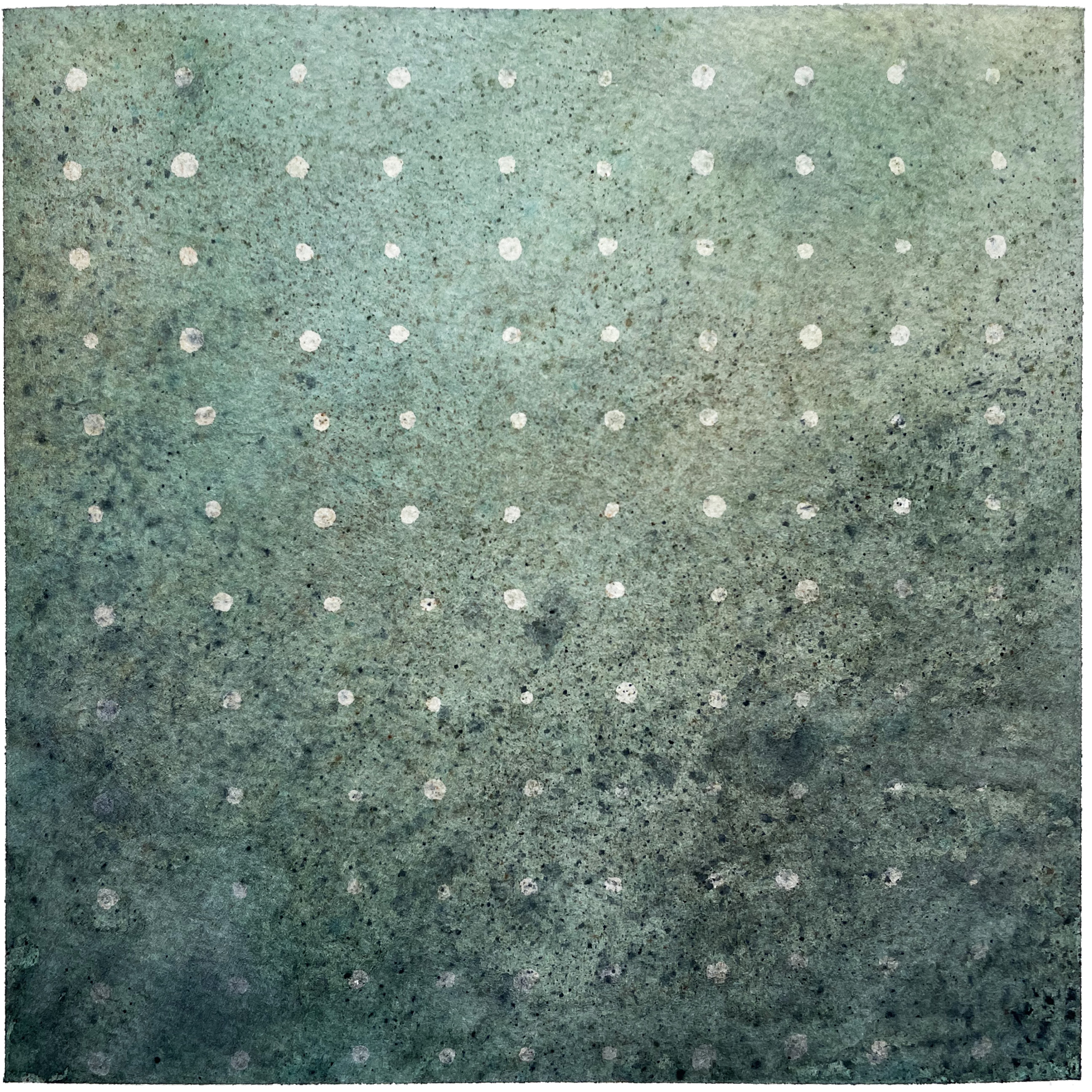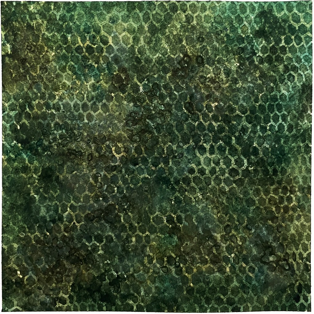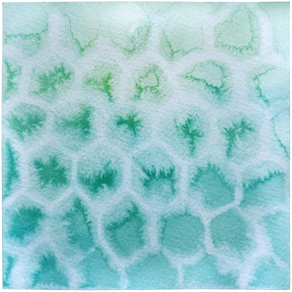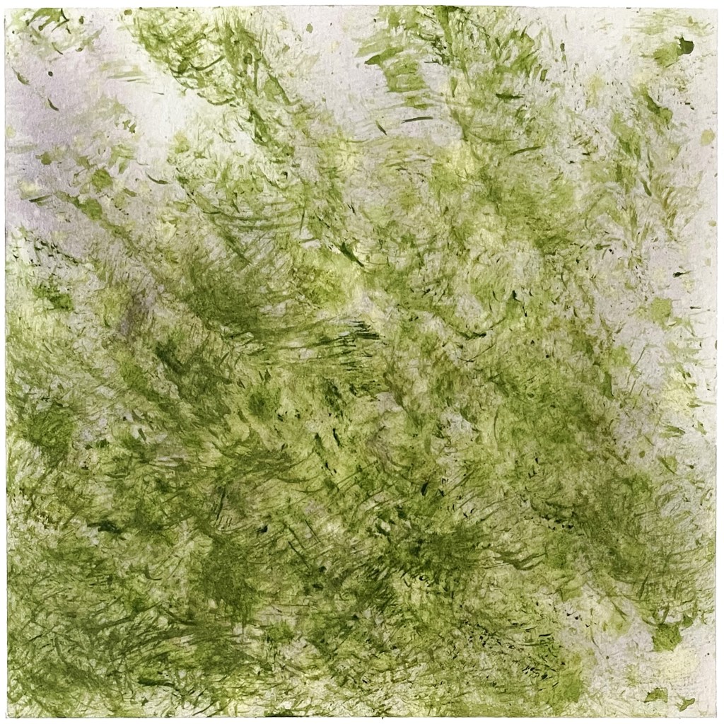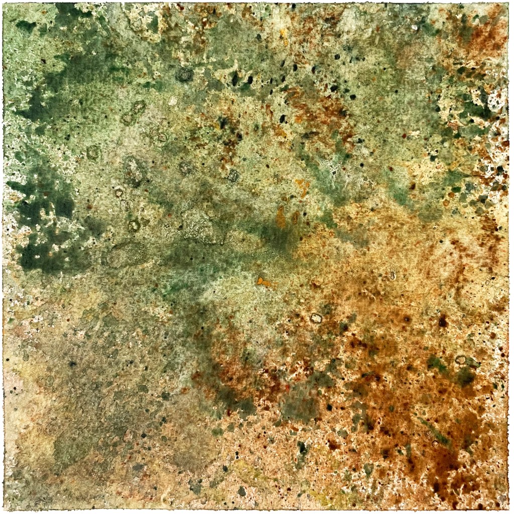 Watercolour and cold-pressed paper – exhibition in the form of a mosaic and installation. Many of these 6″ by 6″ watercolours were reproduced on vellum paper in the artist’s book “Le ventre des galets” (SCW, 2023). All quotes come from Max Porter’s novel “Grief is the Thing with Feathers” (2015).