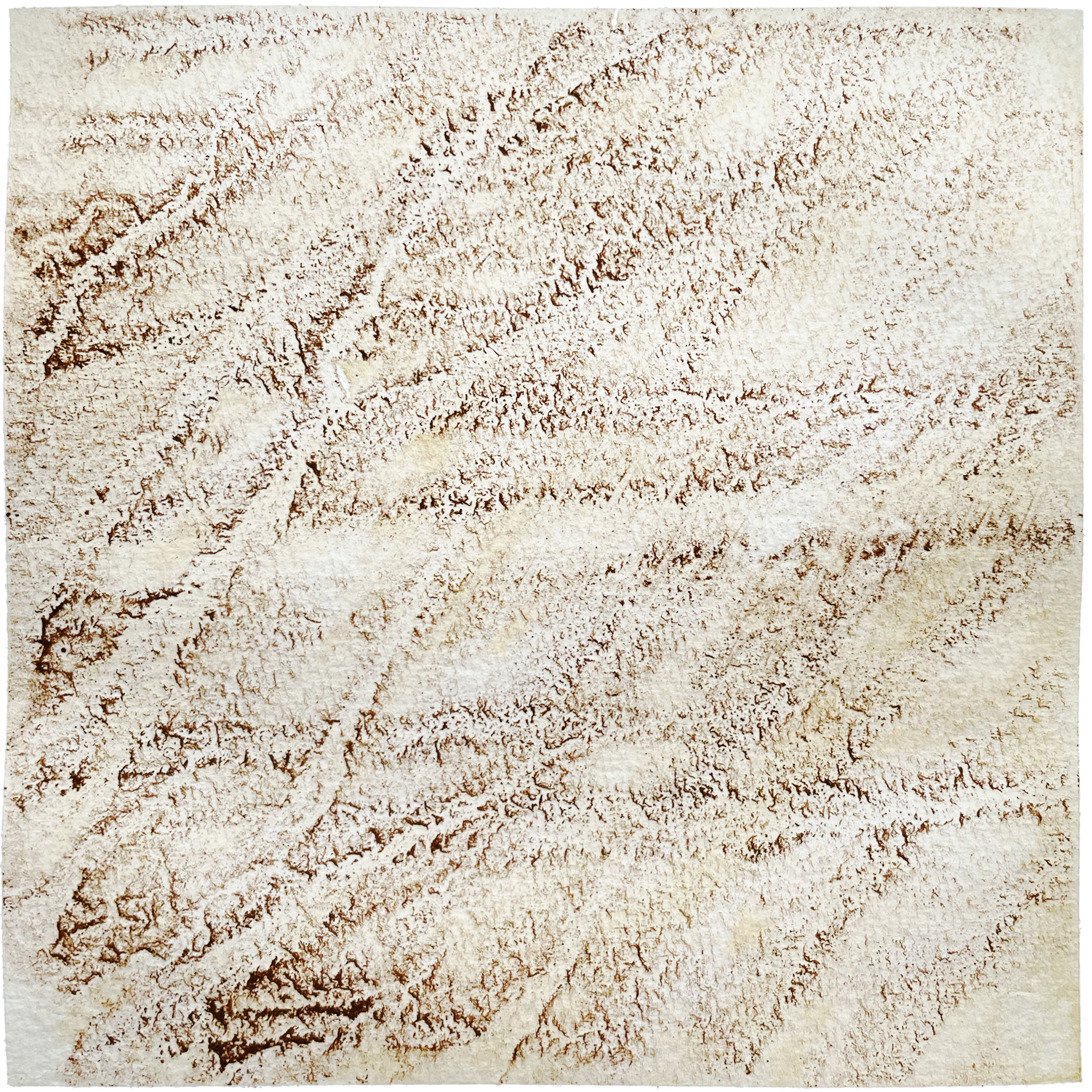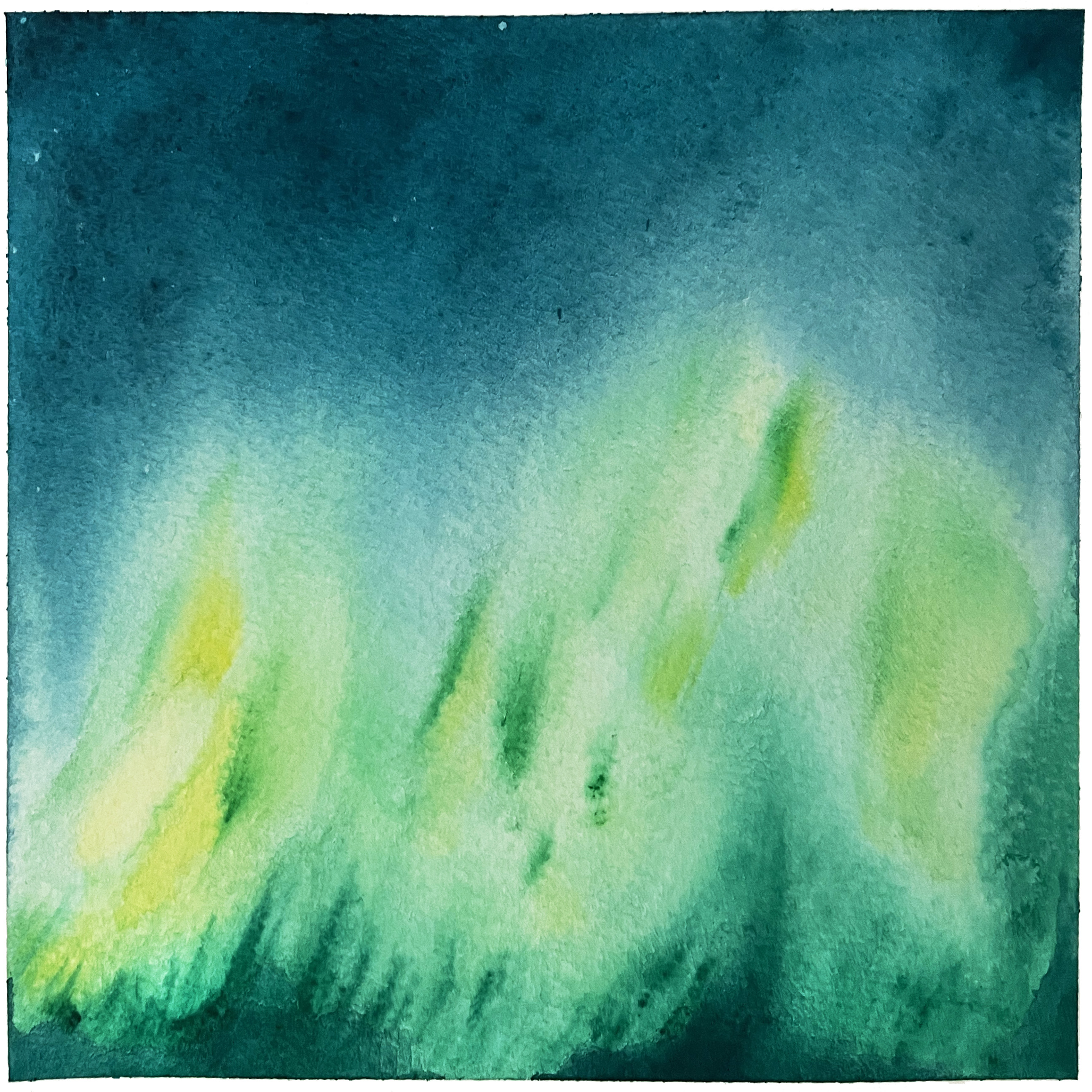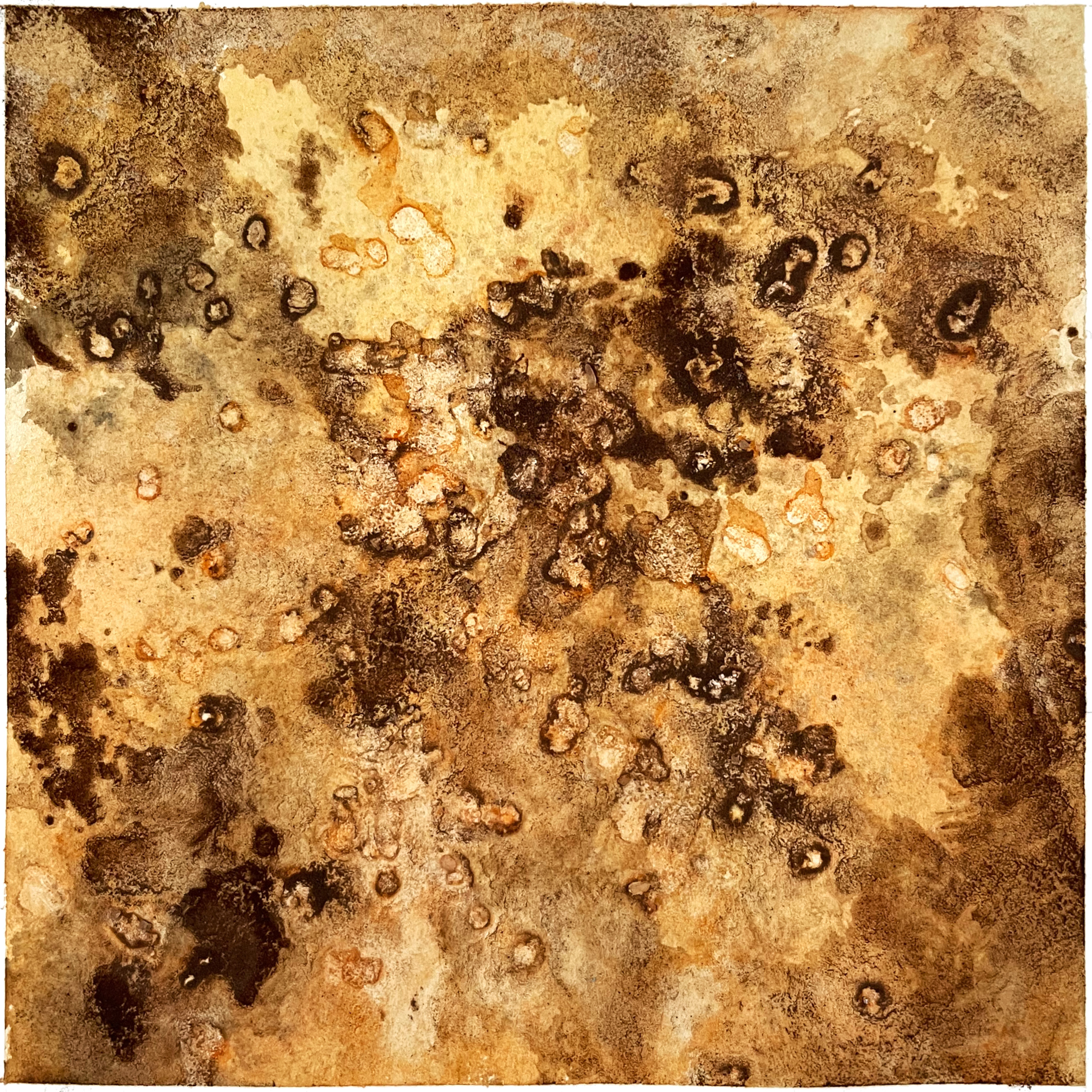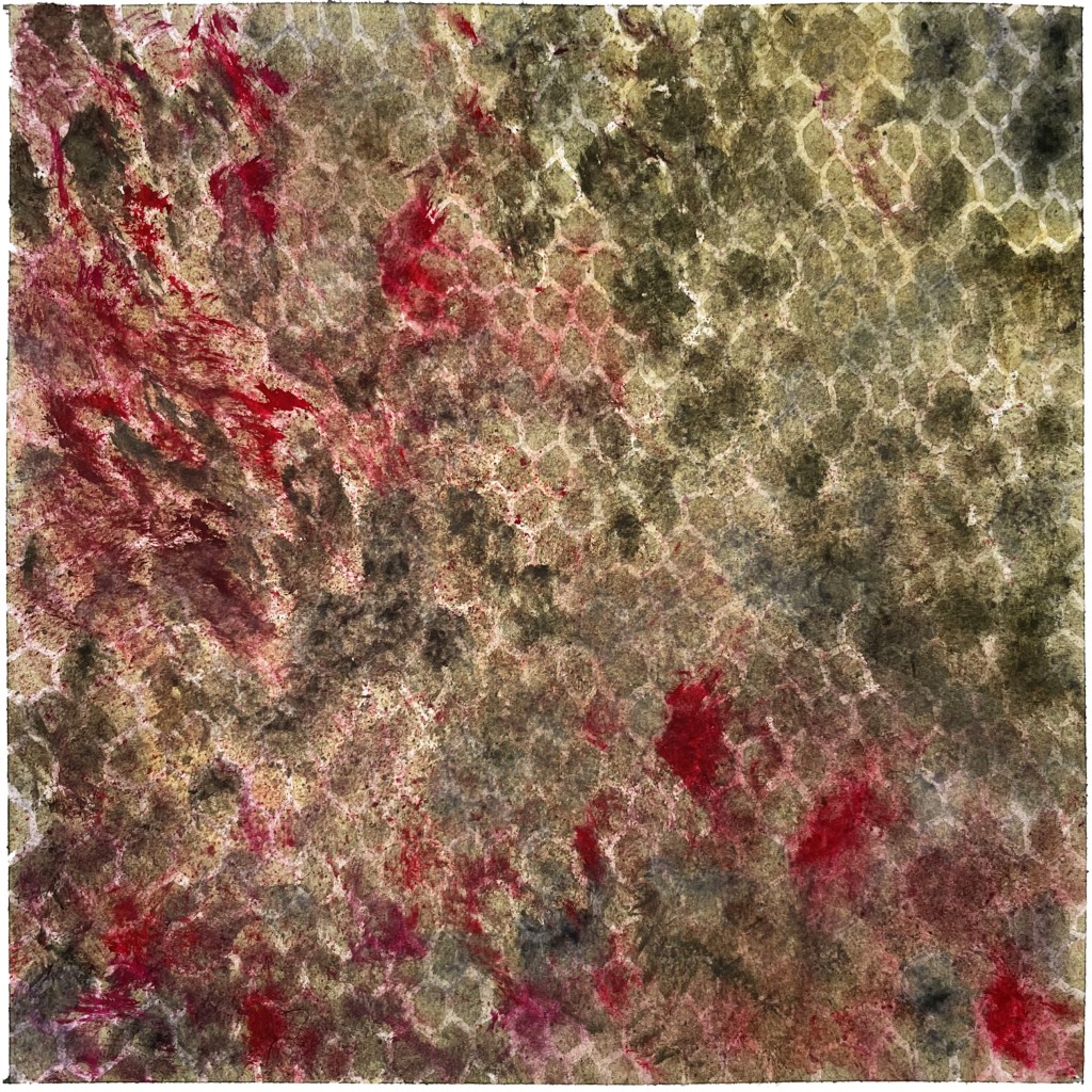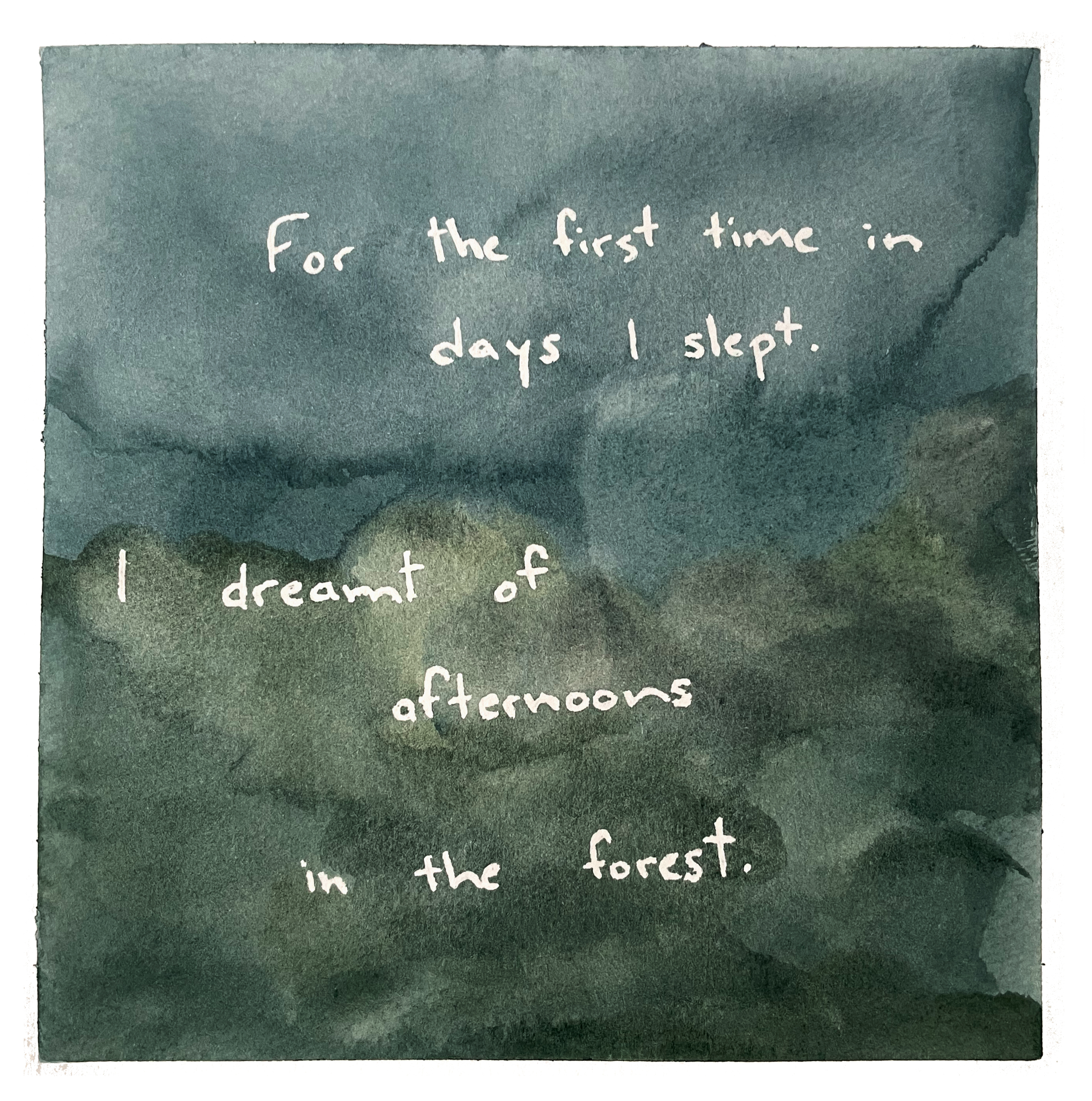 Watercolour and cold-pressed paper – exhibition in the form of a mosaic and installation. Many of these 6″ by 6″ watercolours were reproduced on vellum paper in the artist’s book “Le ventre des galets” (SCW, 2023). All quotes come from Max Porter’s novel “Grief is the Thing with Feathers” (2015).