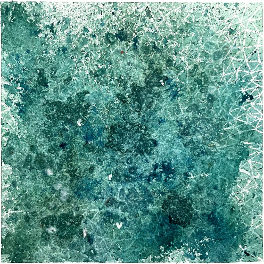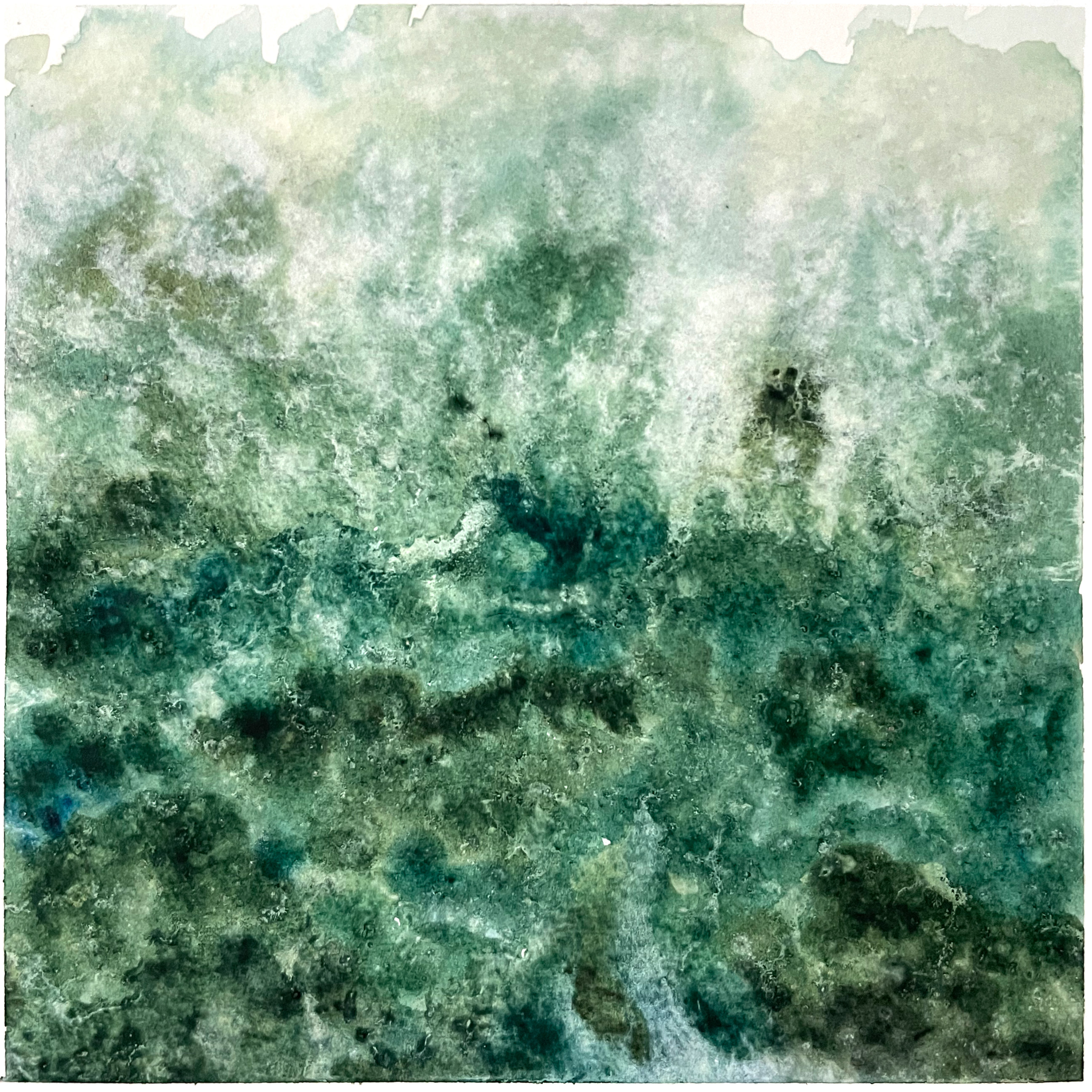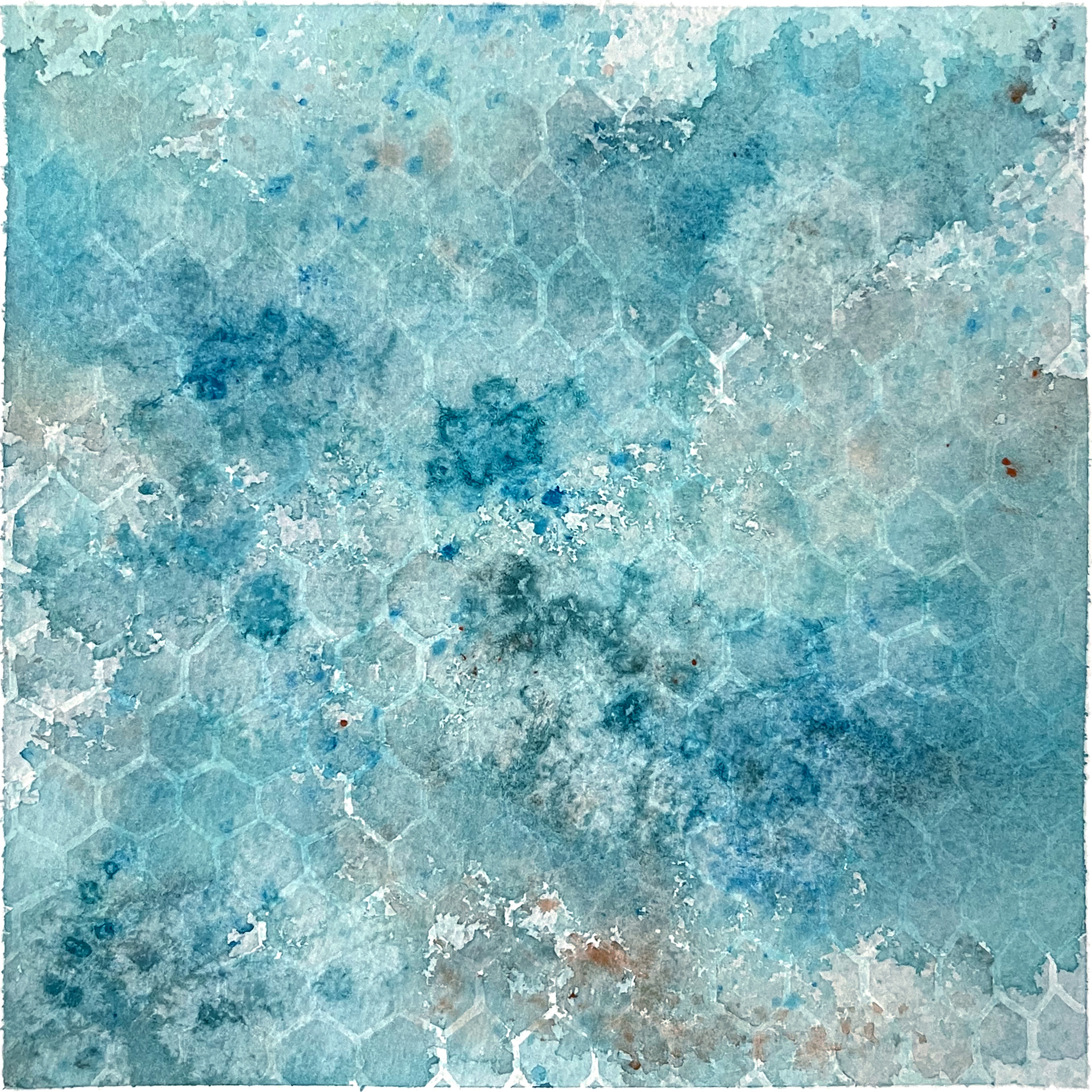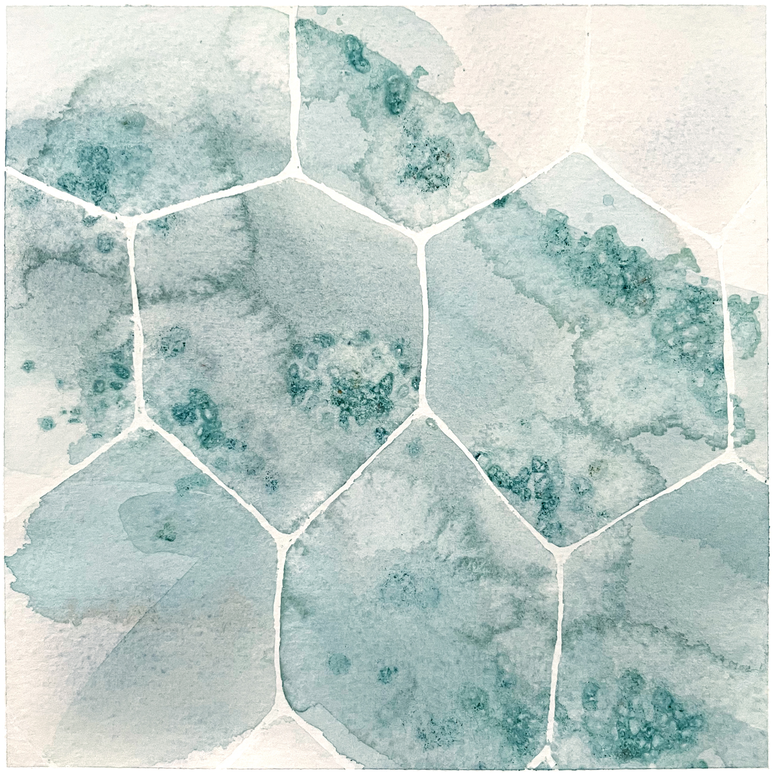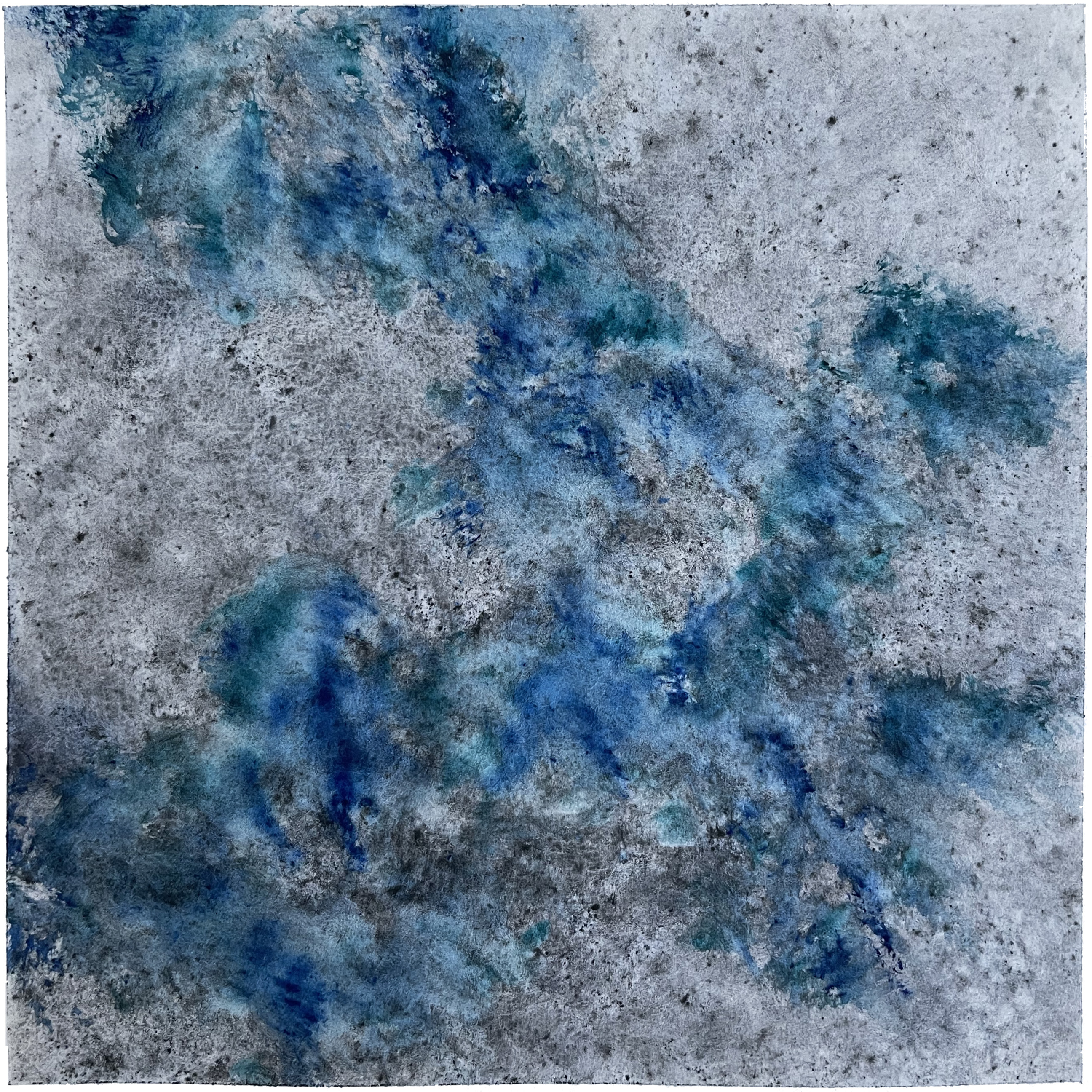 Aquarelle et papier pressé à froid – exposition sous forme de mosaïque et d’installation. Plusieurs de ces aquarelles de 6″ par 6″ ont été reproduites sur papier vélin dans le livre d’artiste “Le ventre des galets” (SCW, 2023). Toutes les citations proviennent du roman “Grief is the Thing with Feathers” de Max Porter (2015).