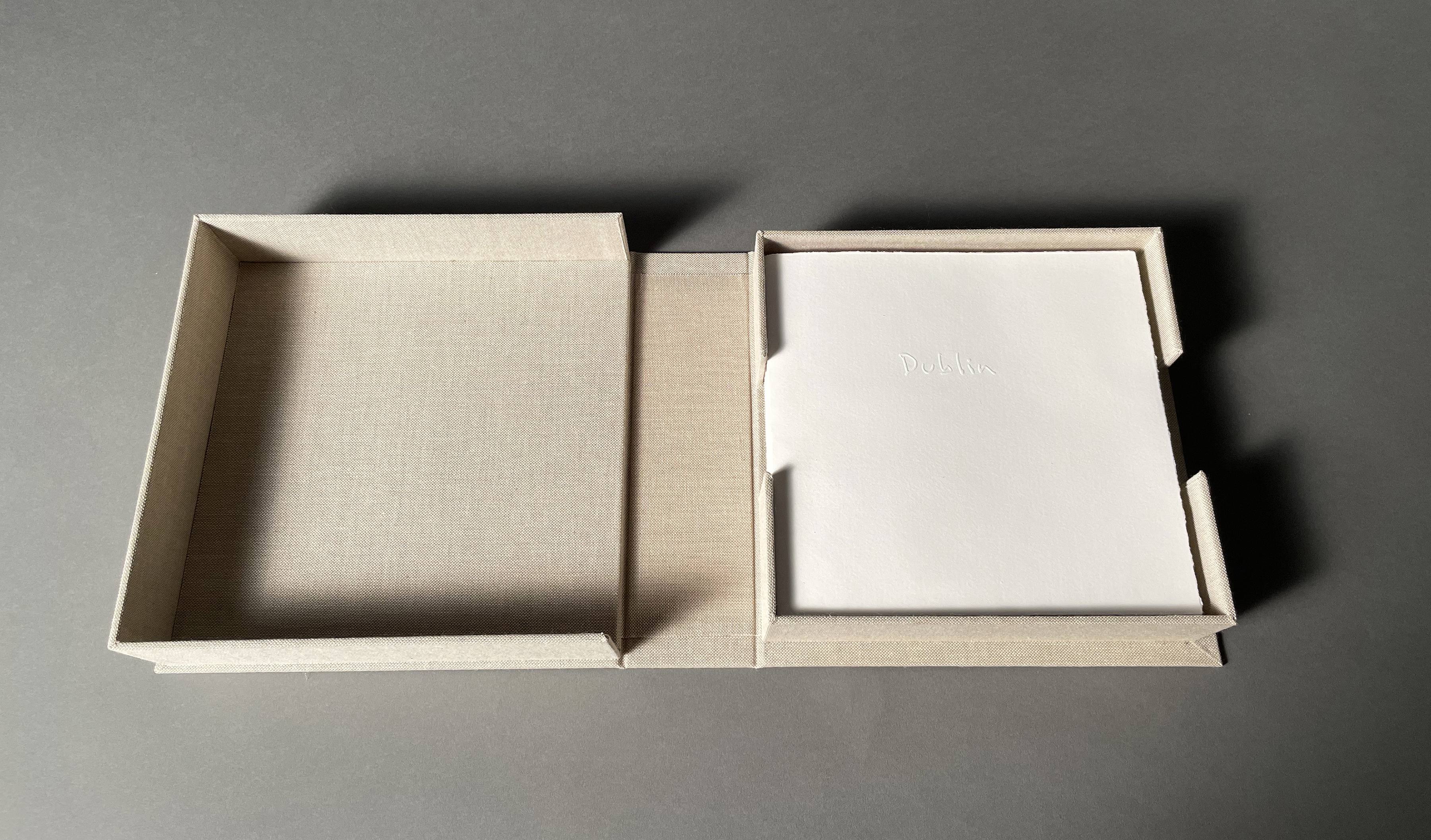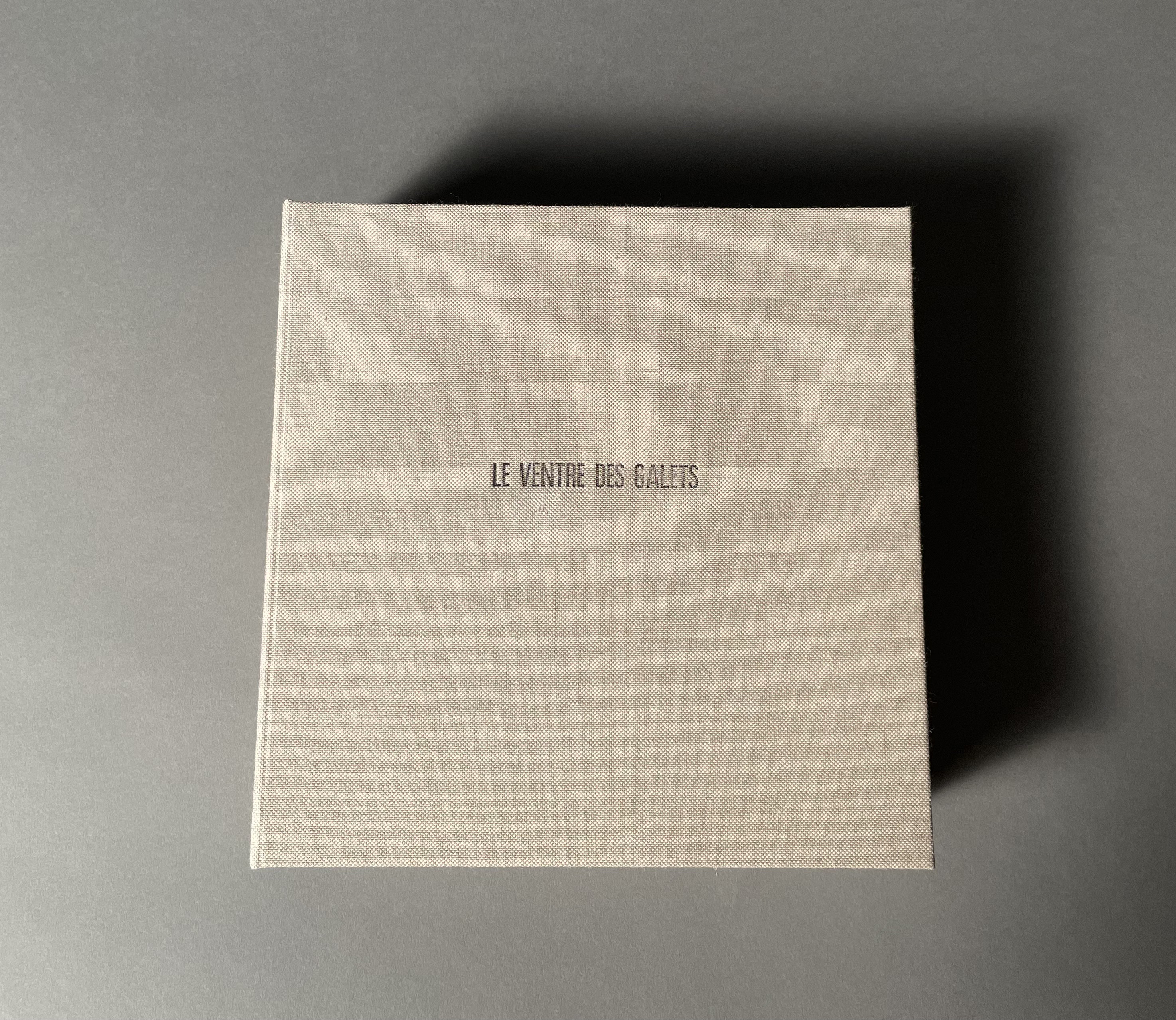 Ce livre d’artiste a été réalisé entre 2021 et 2023 dans le cadre d’une maîtrise en recherche-création en littérature à l’Université Laval. Le ventre des galets est un récit et un livre d’artiste présenté en onze carnets dans un boîtier entoilé. Aquarelles et fragments de non-fiction s’entrecroisent au fil de onze accordéons de vélin pour évoquer des souvenirs de voyage et de deuil. En unissant art expressif et fragments littéraires, l’artiste souligne le pouvoir des mots ainsi que leurs limites face à l’incontrôlable. Techniques: boîtier à deux volets confectionné à la main, estampage à chaud, photogravure, marquage à froid, aquarelle, photographie numérique et impression laser sur vélin. Matériaux: carton, toile à reluire, papier à gravure BFK Rives blanc, vélin, colle Gudy. Dimensions: 22 cm x 48 cm x 6 cm. Huit exemplaires ont été conçus et deux copies ont été acquises par la Bibliothèque des Archives nationales du Québec (BAnQ) en 2024.