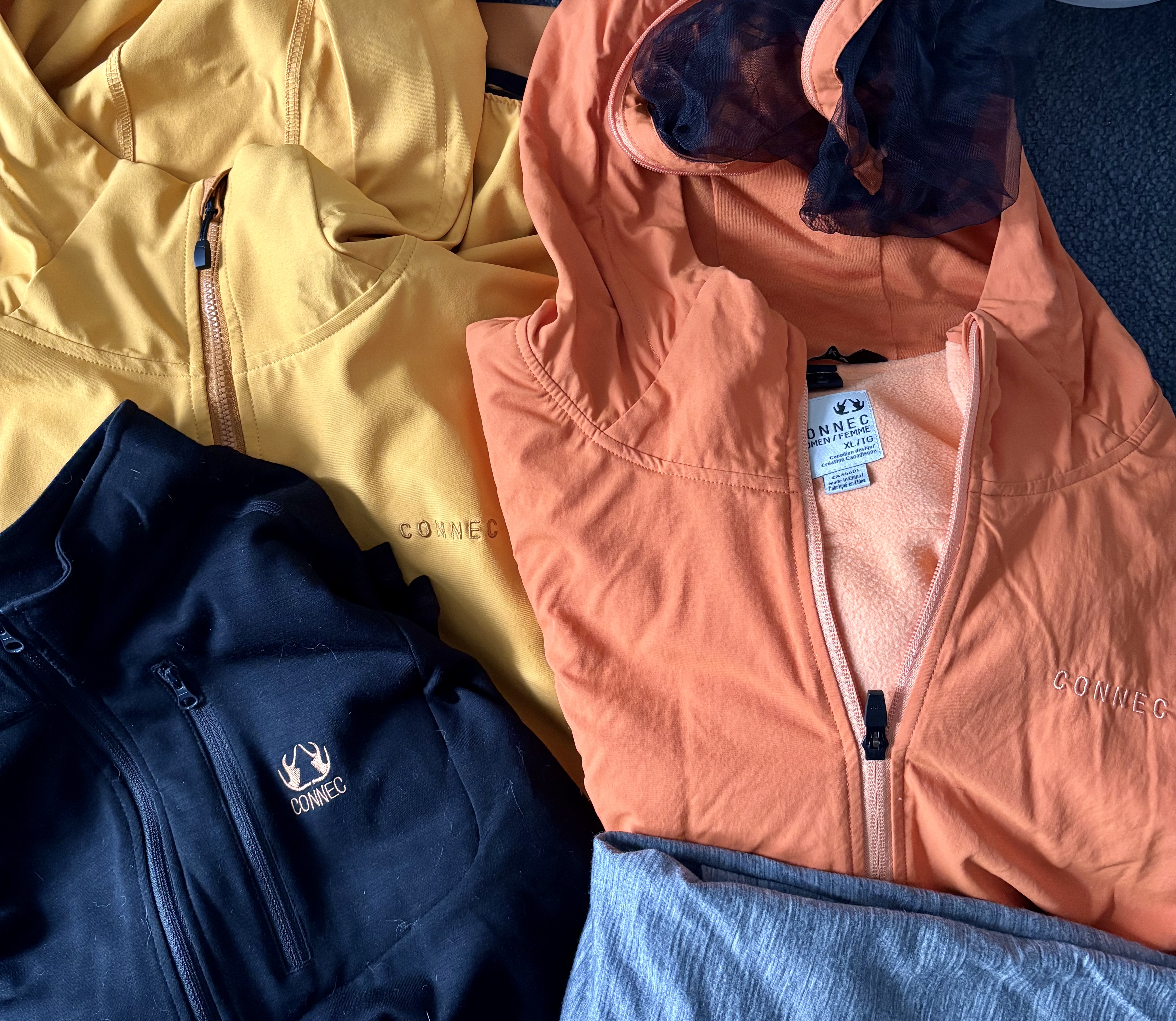 While preparing for Scotland 2025, I had the chance to meet members of the Connec Outdoors team at the Quebec City Outdoor Show (https://connecoutdoors.com). Connec is a Quebec company that I’ve only recently discovered, but that I love with all my heart! Why? Because they design their clothing with such care that it exceeds all my expectations (they deserve an Outstanding grade). The textures are pleasant, the sizes are realistic (I don’t need to wear XXL to fit my long torso) and the designs are ultra comfortable. As someone with hypersensitivities, I have so much choice when I shop there because everything, absolutely everything is thought out down to the smallest detail. For example, I never wear a “down jacket”, because it’s restrictive and non-stretchy and I look like a tree trunk in it. But Connec thought of creating a stretchy (!!!!!) “down jacket” style mid-layer. In addition, they thought of adding a small ring of fabric (soft and stretchy), to hook the thumb before putting a raincoat over it, to prevent the sleeve from riding up in the coat. This detail convinced me ad vitam aeternam.