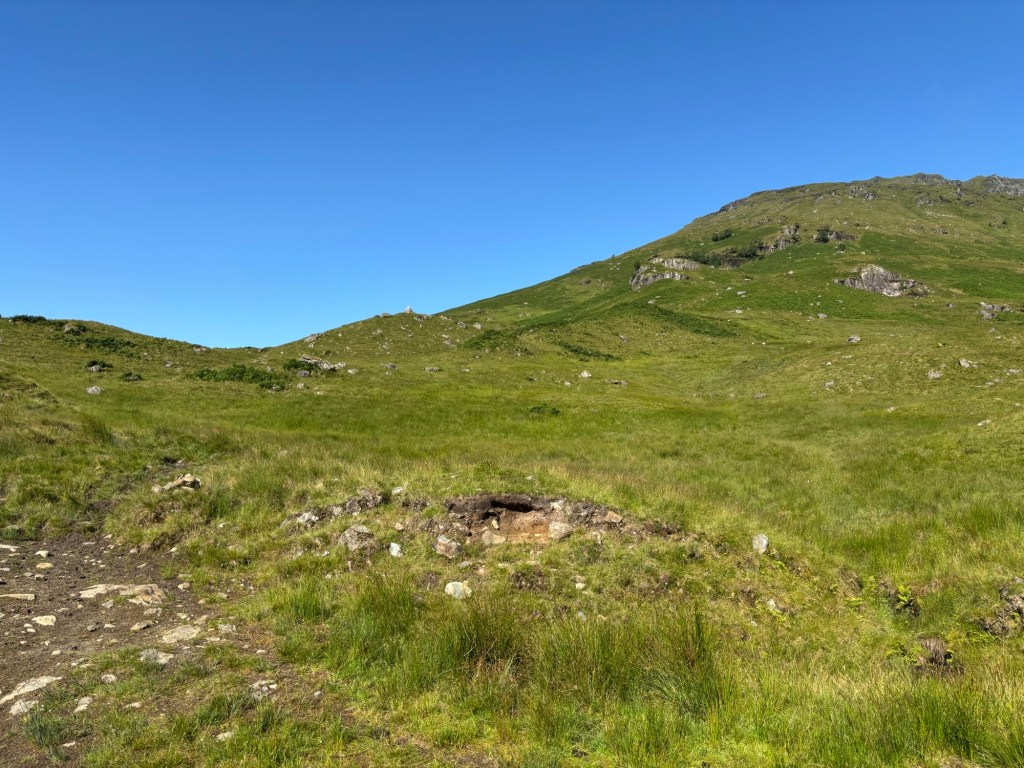 Jeudi, j’ai grimpé les Cairnwell Munros, un trio de sommets où s’est installé un centre de ski. Càrn Aosda est le premier sommet que l’on grimpe via un chemin de pierres molles (scree) quasiment en ligne droite. En moins d’un heure, j’y étais (le stationnement se trouve à environ 600 mètres d’altitude, et le sommet seulement à 917 mètres).