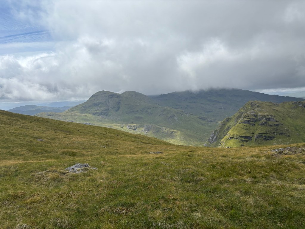 Cette semaine, je suis allée dans les montagnes à deux reprises. Lundi, j’ai fait la connaissance de Beinn Tulaichean et de Cruach Àrdrain, deux sommets du parc national du Loch Lomond et des Trossachs près de Crianlarich. C’était ma première sortie à double sommet. Aussi, ma première sortie sans chemin: l’un des éléments qui m’angoissait le plus pendant la préparation.