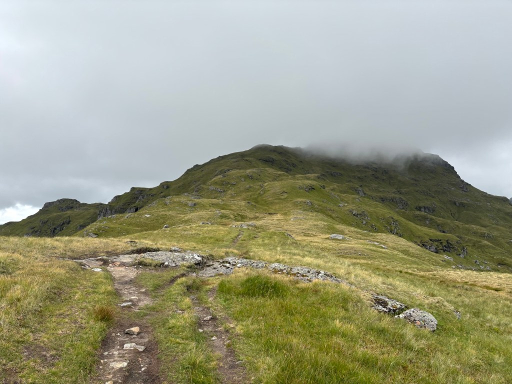 The summit of Cruach Àrdrain remained shrouded in mist—what a beautiful moment. Walkers often talk about the ‘view’ from the summit. It’s gorgeous, yes, but the experience of being high up in a cloud is just as magical, if not more so, than a clear view.