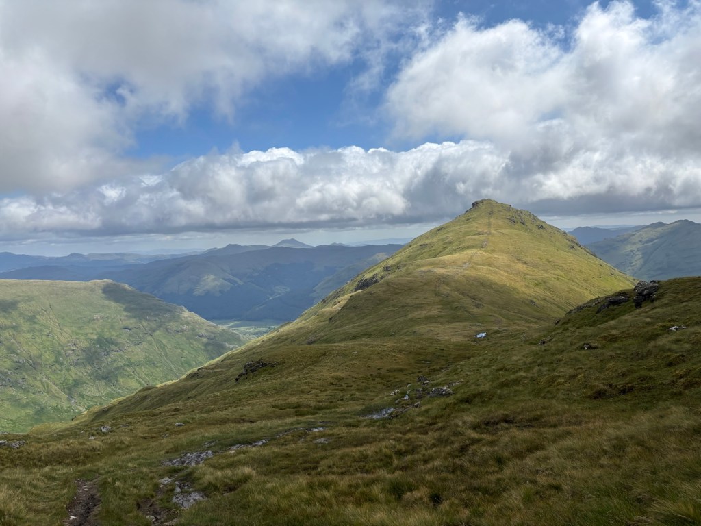 This week, I went to the mountains twice. On Monday, I climbed Beinn Tulaichean and Cruach Àrdrain, two peaks in the Loch Lomond and The Trossachs National Park near Crianlarich. It was my first double-peak outing. Also, my first outing without a path: one of the things I was most anxious about during the preparation.
