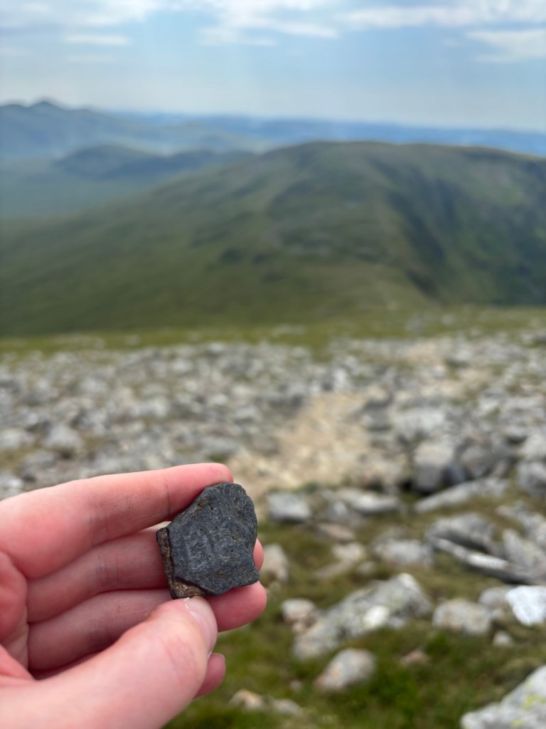 While descending Ben Lui, I was considering not climbing the second peak (Beinn a’Chlèibh), because my right knee had been hurting for a week. But when I received a message from my sister saying that my niece would like to be on the mountain with me, I couldn’t give up. I picked up a small stone, a piece of quartz, and carved her name to dedicate the second peak of the day to her. In the end, it was my favorite moment of the walk, this ascent of Beinn a’Chlèibh.