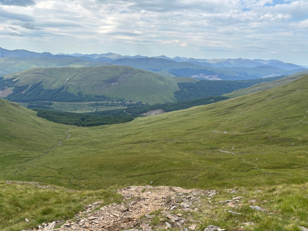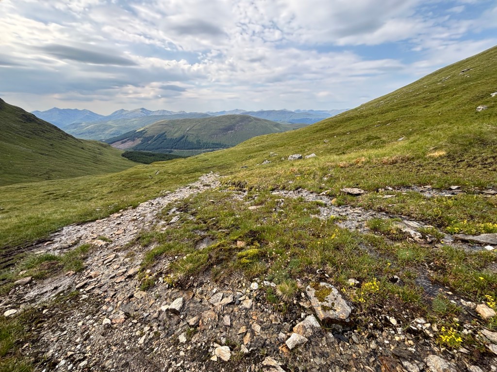 Since the heatwave, my nights have been less than restorative. Waking up is difficult, and on Thursday morning (like on so many other mornings), I was too tired to eat. I’ve always had trouble eating breakfast, but I increasingly understand the impact of an empty stomach on a day of massive exercise. I climbed Ben Lui on an empty stomach too, and it was just as difficult. Up Corrie Fee, the road is spectacular, the trail is wonderfully maintained and smartly designed – the climb seems gentle (while remaining steep), and the view is like a fairy tale. But, that morning, I felt like I was working on fumes, running out of fuel.
