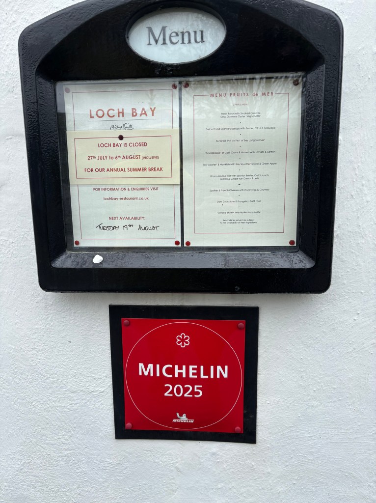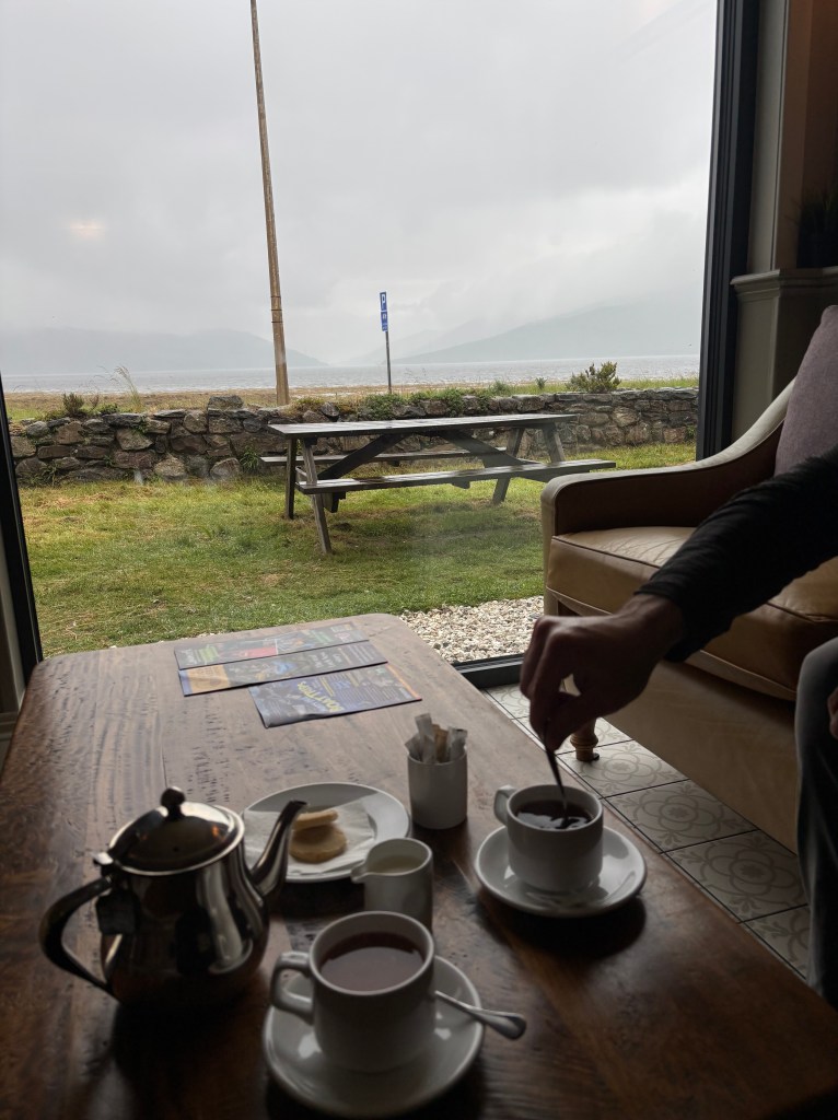 That night, we stayed at a small B&B on the Isle of Skye, near a distillery and facing the Sound of Sleat. We arrived late; I was exhausted and my knee was killing me. The restaurant was closed, so I boiled water for a chicken blanquette Happy Yak with pasta. Meanwhile, Phil went back down to the bar and came back with a pint of Guinness — my first since I arrived. What a partner! The shower was bliss, and the beer was heavenly. We asked for a late check-out so we could nap after breakfast, but only found out as we were leaving that the nap would cost us £30 — and the cleaning guy banged on our door at 11 anyway… pretty lame.