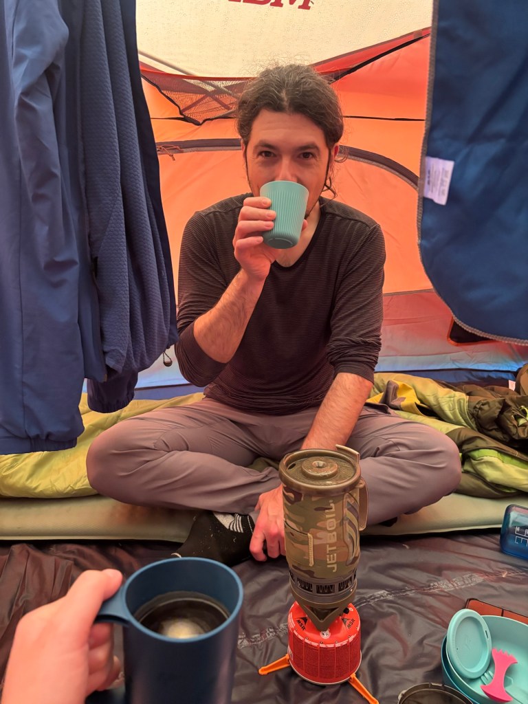 I learned how to sleep well while camping. Like my sister, I’ve always needed lots of sleep — probably a blessing for our parents when we were kids. Knowing that, I didn’t hesitate to buy all the essentials when I got to Stirling. Camping also made me realize that a pre-bed shower isn’t just about hygiene — it’s about relaxing my nervous system (which needs conscious, gentle management). The first night, I tried to do like Phil and just go to bed without my usual routine. The next morning, I had abdominal pain I hadn’t felt in ages — a clear sign of high stress. It frustrates me not to be as adaptable as he is, but there’s no point dwelling on it. Every other night, I followed my bedtime routine and slept really well — even if “it smelled like anxiety.” We didn’t give ourselves much of a chance, Phil and I. First couple’s camping experience: in Scotland, in the Highlands, with wind, endless rain, and midgies, the toughest mountains yet, and during PMS. We don’t do things halfway — that’s just how we are. Still, he was exceptionally patient and brave, because I was an emotional, overstimulated, hypersensitive rollercoaster.