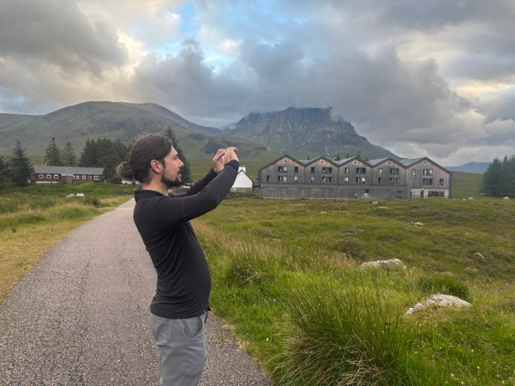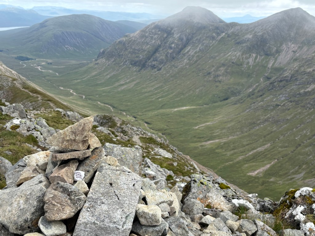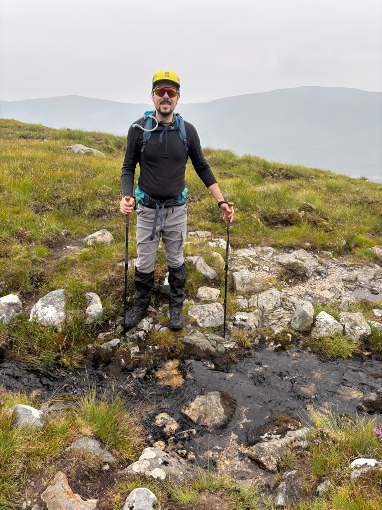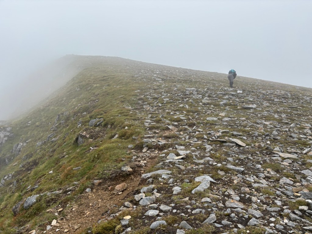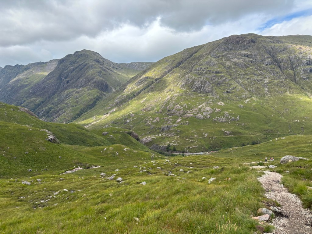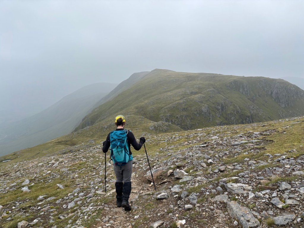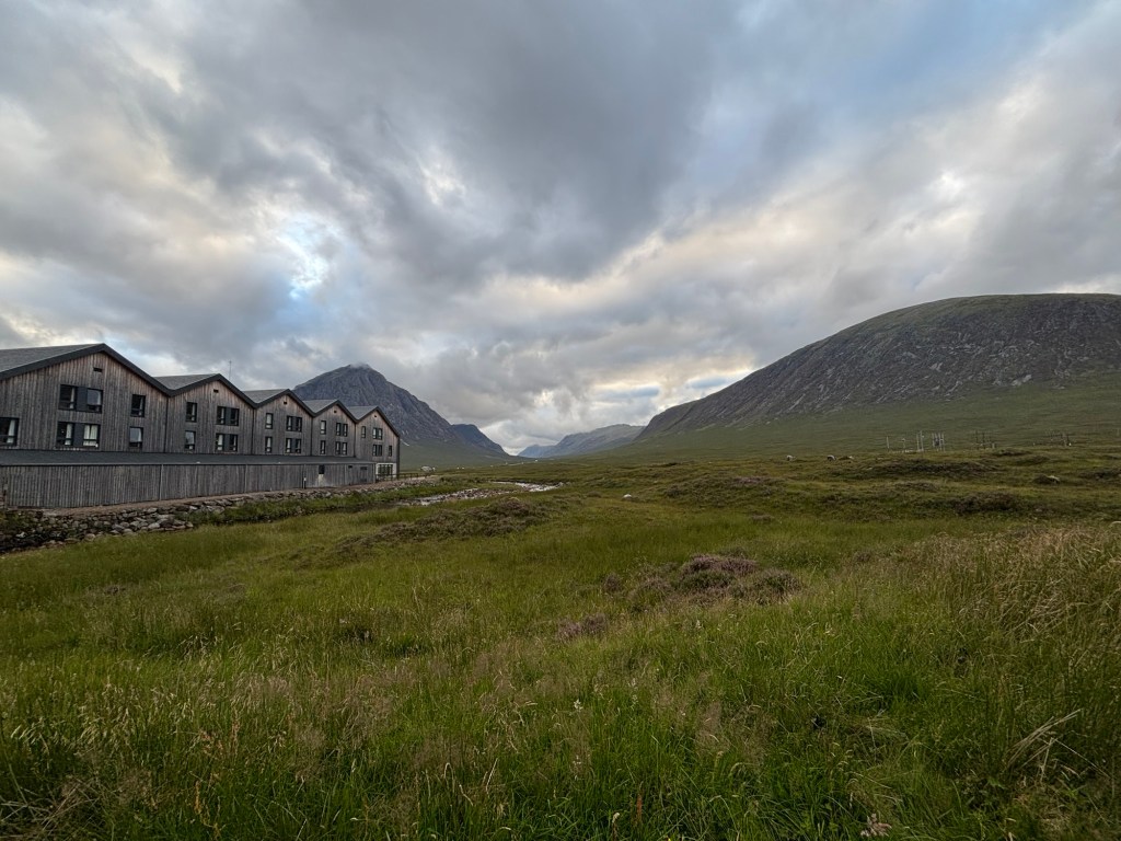 Our second mountain hike was Buachaille Etive Beag — two summits in Glencoe Valley. We stayed at the Bunkhouse after the frostiest welcome I’ve ever seen. The Bunkhouse is the youth hostel attached to the Kingshouse Hotel — a very posh place and the only hotel in Glencoe Valley. Having worked at Château Frontenac, I can say any staff treating guests like we were treated would’ve been fired. Both at the front desk and the Way Inn, it felt like we were a nuisance. I thought it would be a highlight, but it turned out to be the lowlight. Anyway, we slept in bunk beds and got up early to ensure a parking spot at the base. Driving the A82 the day before, the tourists were worse than the midgies — and far more dangerous behind the wheel. Tourist-heavy areas were the worst part of our trip. We started the hike at 8:30 a.m., already surrounded by… midgies! The first 2/3 of the climb was a bug nightmare. It was my earliest start so far; midgies are most active in the morning dew and evening mist. The bugs pushed me to my fastest climb yet — but not my most pleasant. Once at the saddle between the summits, we chose to climb Stob Coire Raineach before the taller Stob Dubh.