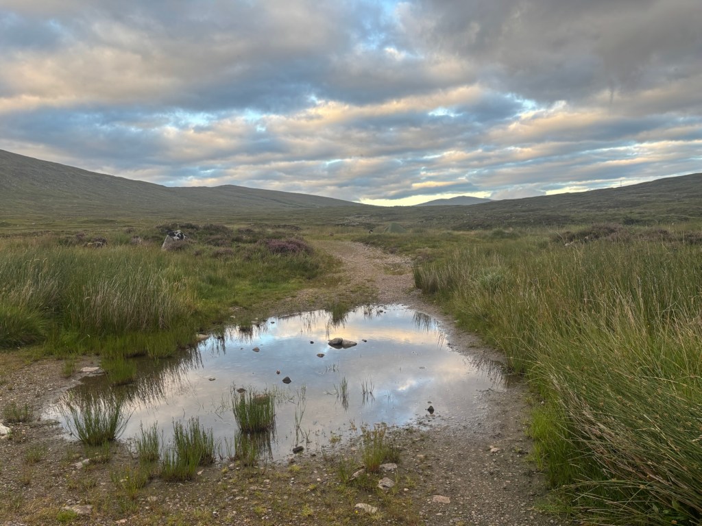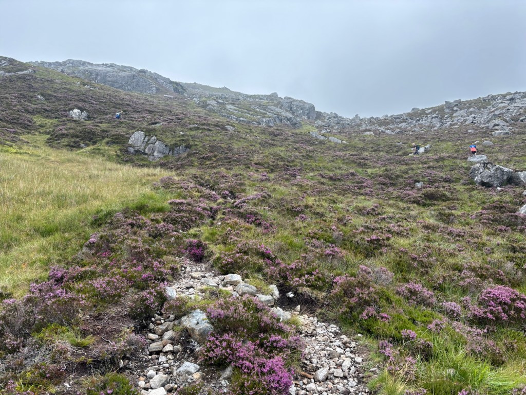 We sacrificed our first night of camping, but it was absolutely worth it. The next day, we were able to set up the tent under a light drizzle on a relatively (VERY relatively) dry patch of ground. I’d been watching the weather closely for days, and our first hike together took place on Thursday, July 24th, in the Kintail mountains. A solid route of three summits, 25 kilometers, roughly 1400 meters of ascent, and just over 11 hours of hiking.