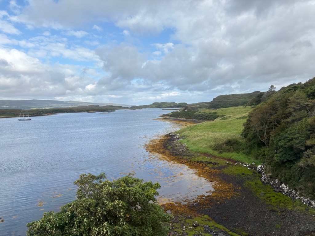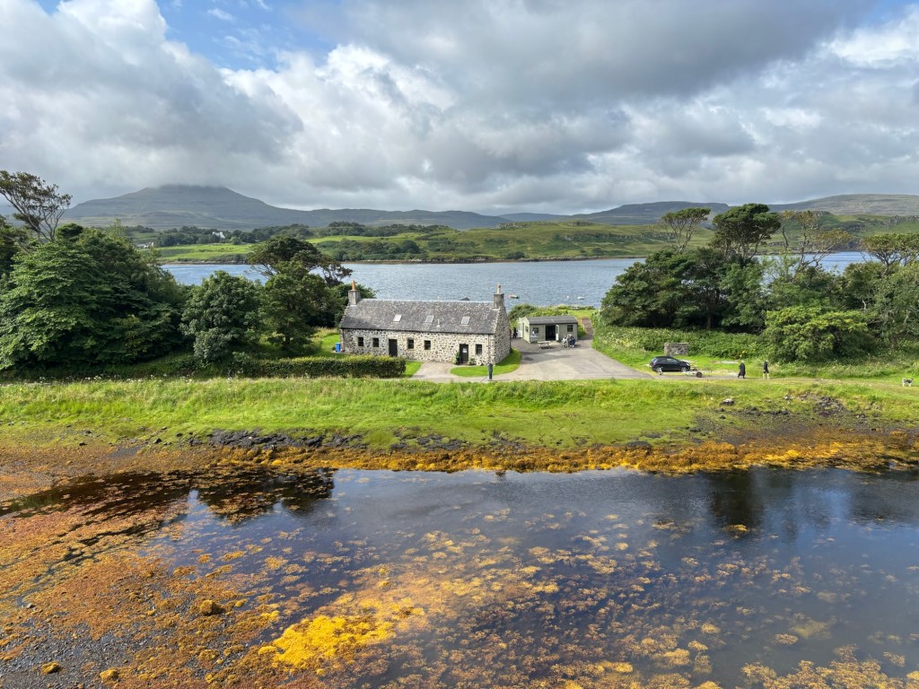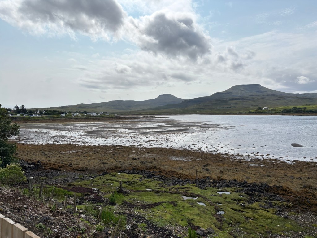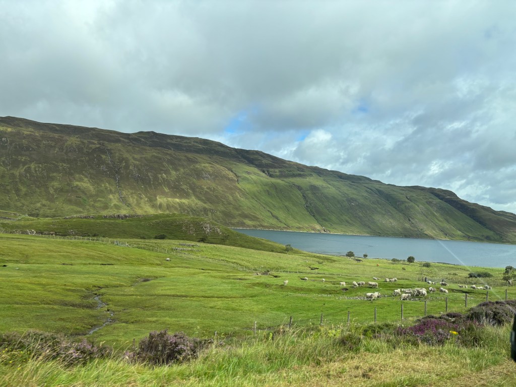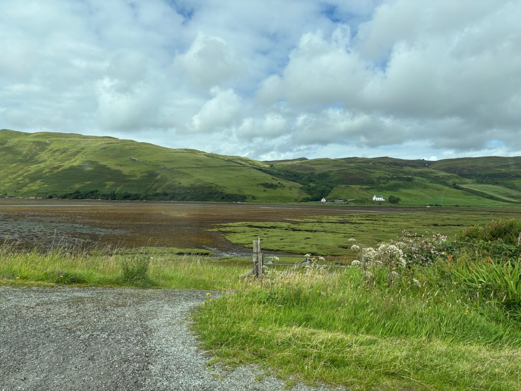 Ce soir-là, on a dormi dans un petit B&B sur l’île de Skye, tout près d’une distillerie et face à un bras d’eau qui sépare Skye du mainland : le Sound of Sleat. On est arrivé tard à l’auberge; j’étais épuisée et mon genou me faisait souffrir. Le restaurant était déjà fermé, alors j’ai fait bouillir de l’eau pour le Happy Yak de blanquette de poulet avec des pâtes. Pendant ce temps-là, Phil est redescendu au bar et a rapporté une Guinness à la chambre – ma première depuis le début de l’aventure en juin. Quel partenaire! La douche était salvatrice et la bière un vrai délice. On a pensé à demander un « late check out » pour pouvoir se recoucher après le déjeuner, mais on n’a su qu’au moment de quitter que cette sieste nous coûterait 30£, même si l’homme de ménage a interrompu notre somme en martelant sur notre porte à 11h… ordinaire.
