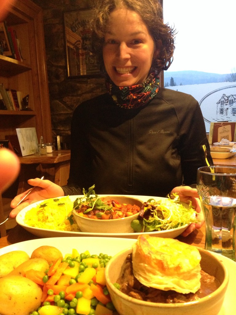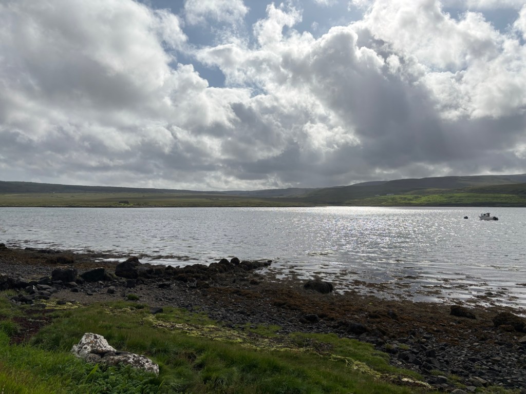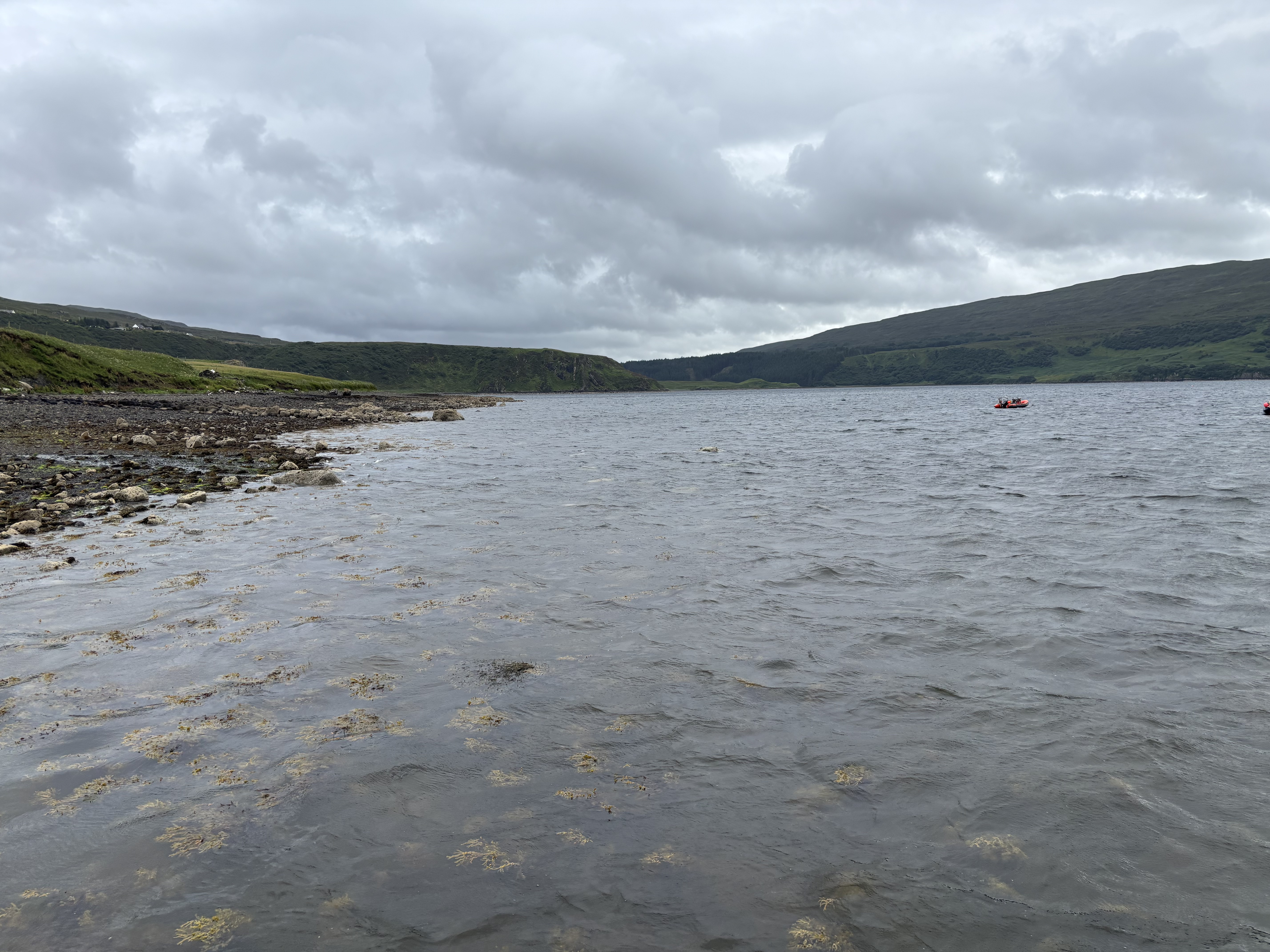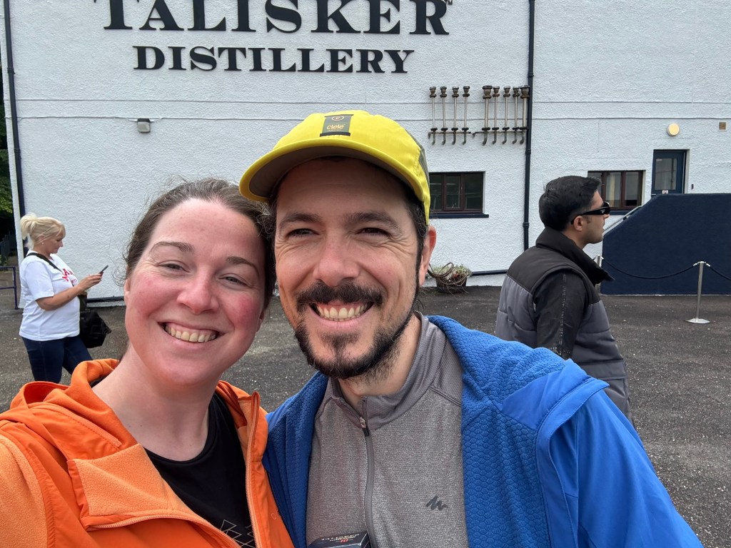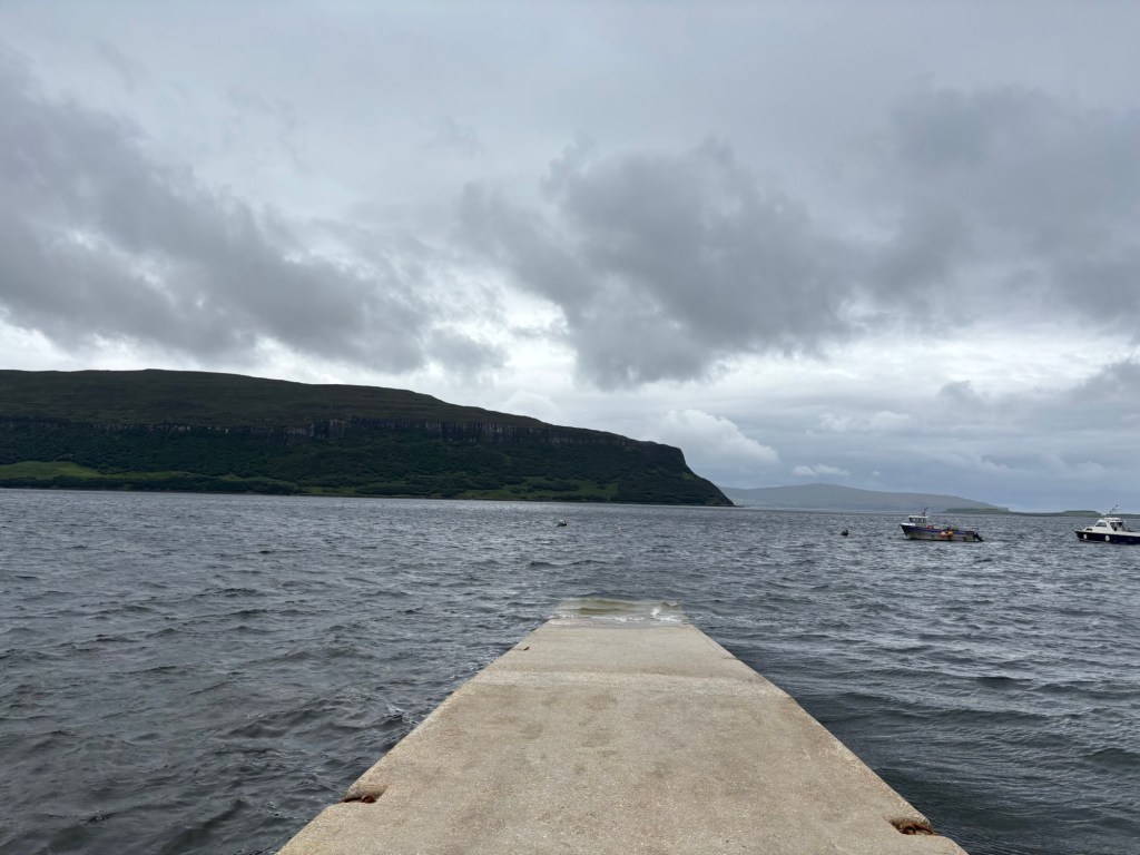 Ce soir-là, on a dormi dans un petit B&B sur l’île de Skye, tout près d’une distillerie et face à un bras d’eau qui sépare Skye du mainland : le Sound of Sleat. On est arrivé tard à l’auberge; j’étais épuisée et mon genou me faisait souffrir. Le restaurant était déjà fermé, alors j’ai fait bouillir de l’eau pour le Happy Yak de blanquette de poulet avec des pâtes. Pendant ce temps-là, Phil est redescendu au bar et a rapporté une Guinness à la chambre – ma première depuis le début de l’aventure en juin. Quel partenaire! La douche était salvatrice et la bière un vrai délice. On a pensé à demander un « late check out » pour pouvoir se recoucher après le déjeuner, mais on n’a su qu’au moment de quitter que cette sieste nous coûterait 30£, même si l’homme de ménage a interrompu notre somme en martelant sur notre porte à 11h… ordinaire.