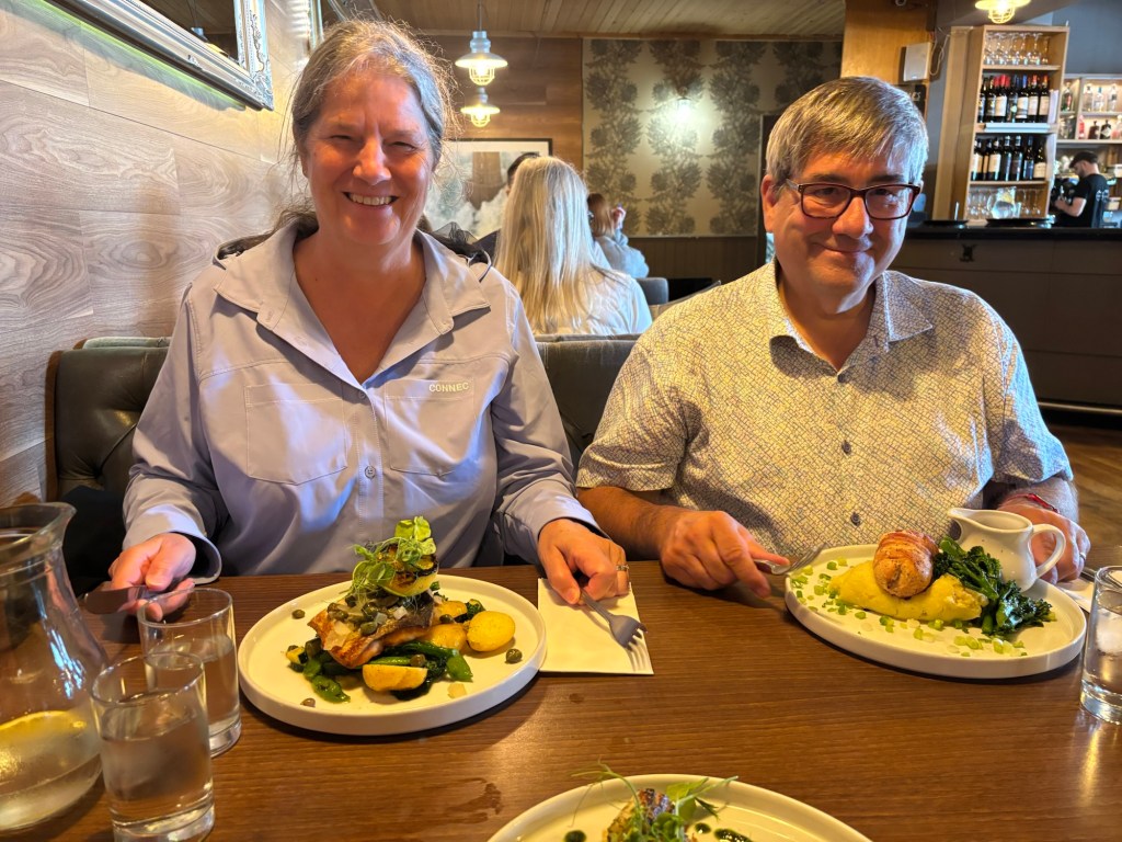 When I reached the parking lot, Pierrette and Luc were smiling. I think Pierrette was relieved… After our hikes together, I think she really understood the scale of a mountain outing here. Back at the hotel in Killin, it was shower-dinner-bed — then packing up for our next stop: Drummond Castle Gardens and our next AirBnB.